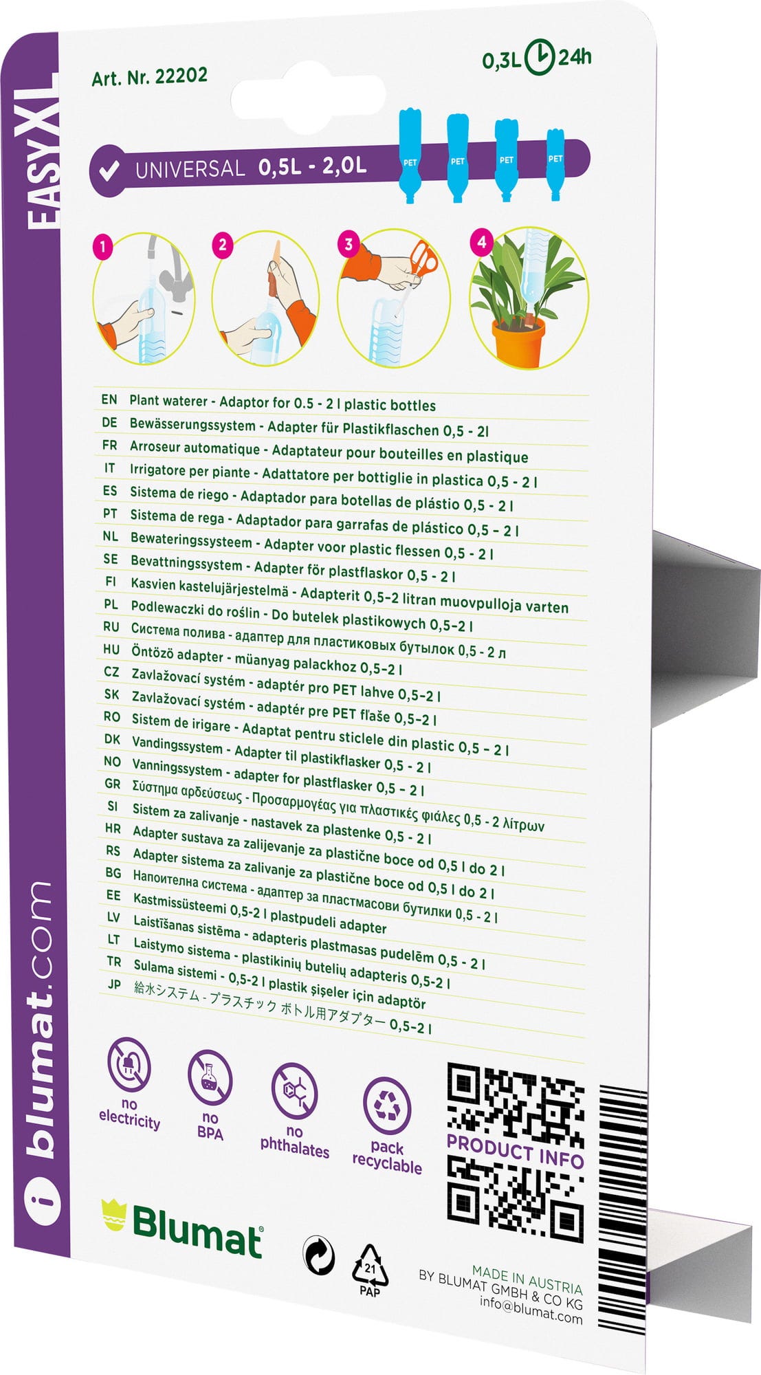 | Fabricante: | Blumat GmbH & Co. KG, Hag 7, 6410, Telfs, Áustria, info@blumat.com, www.blumat.com |