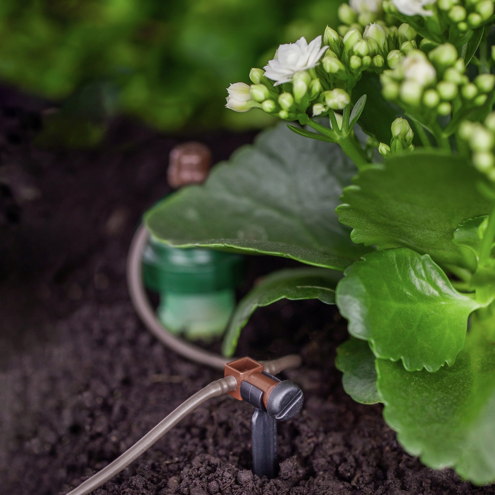 Bocal de gotejamento para o tubo de gotejamento de 3 mm com bocal de mangueira em ambos os lados, para equipar o Tropf-Blumat com até cinco pontos de gotejamento (corrente de gotejadores).