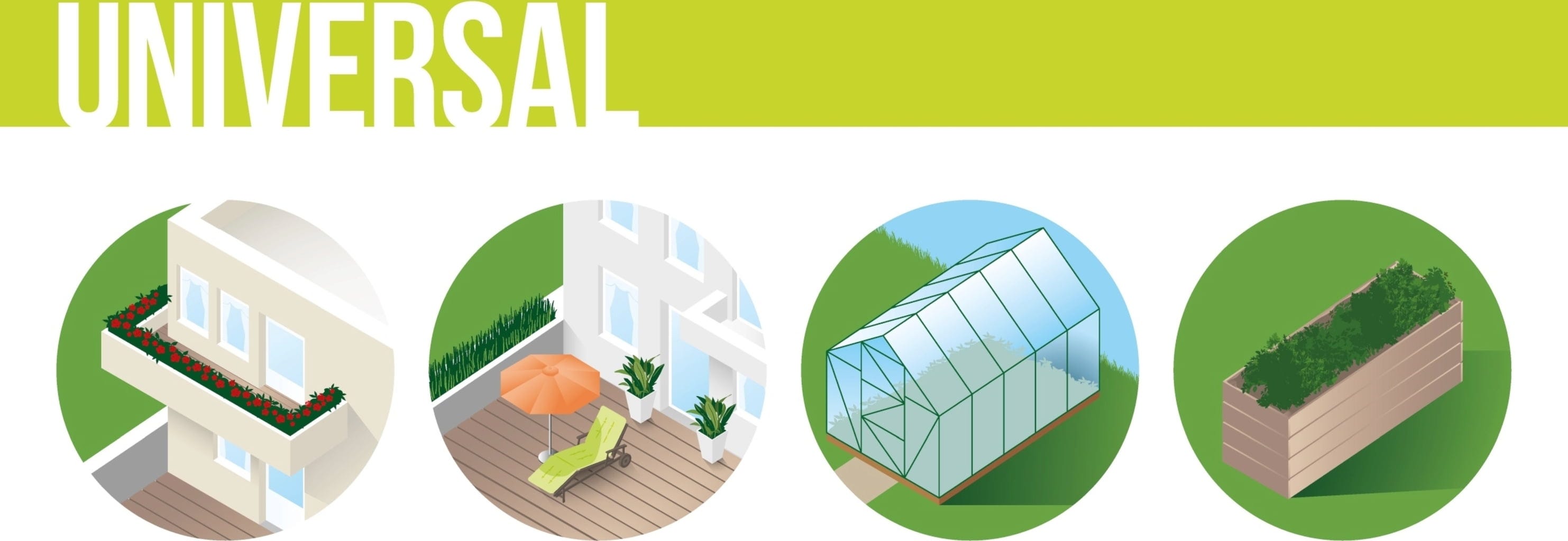 - Uso universal para todas as plantas em varandas, terraços, bem como em estufas e canteiros elevados