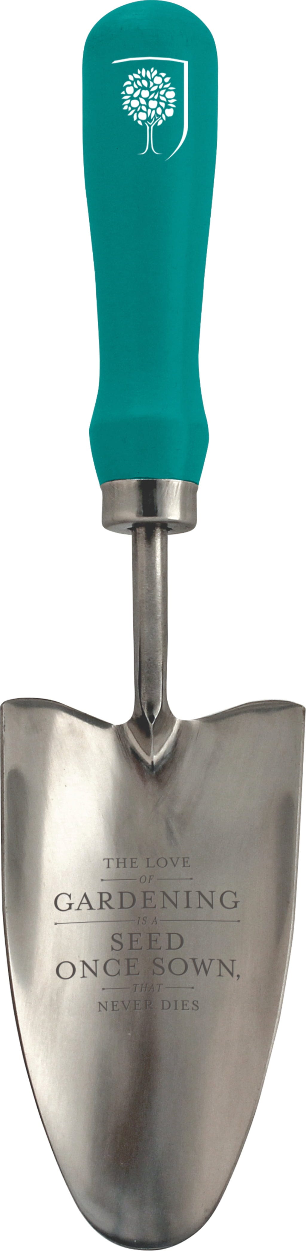 Nada se faz sem uma Pá de Jardim. O cabo desta Pá, com um acabamento lacado a azul de alta qualidade, é fabricado em madeira com certificação FSC®. Confere-lhe um aspeto extremamente elegante e adapta-se perfeitamente à tua mão. Como detalhe especial, a Pá tem gravada uma citação de Gertrude Jekyll: "The love of gardening is a seed once sown, that never dies." - "O amor pela jardinagem é uma semente que, uma vez plantada, nunca morre."