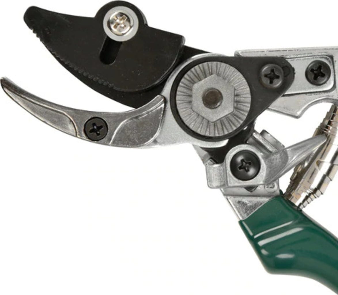 Esta genial Tesoura Bypass é ideal para Plantas com Espinhos, como Rosas, Amoras e Arruda. Ao pressionar, as lâminas da tesoura trabalham em conjunto e completam o corte, enquanto um dispositivo de fixação desce sobre o caule. Assim, o ramo fica fixo sem que tenhas de lhe tocar. As Lâminas ultra-afiadas em Aço de Carbono temperado cortam com precisão e têm uma vida útil especialmente longa. As pegas metálicas robustas são revestidas com uma Camada Antiderrapante, garantindo uma aderência segura em qualquer situação.