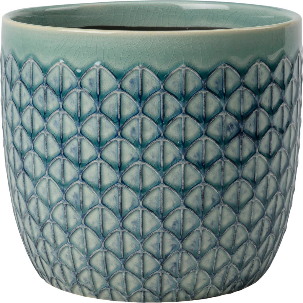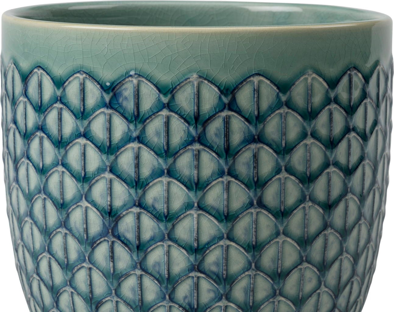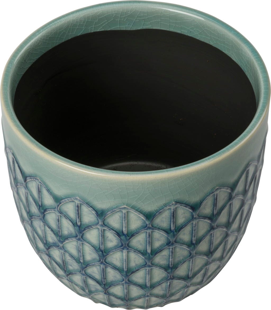 Dá à tua Casa um toque elegante e moderno com este Vaso para Plantas de Interior com design artístico. O Padrão em relevo é realçado de forma elegante por uma lavagem de cor Azul Profundo. Um Vidrado Craquelé subtil num deslumbrante Verde/Azul Celadon confere profundidade adicional ao design e torna este Vaso num verdadeiro destaque visual.