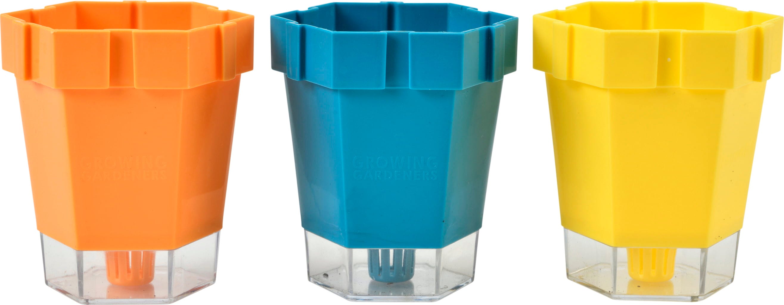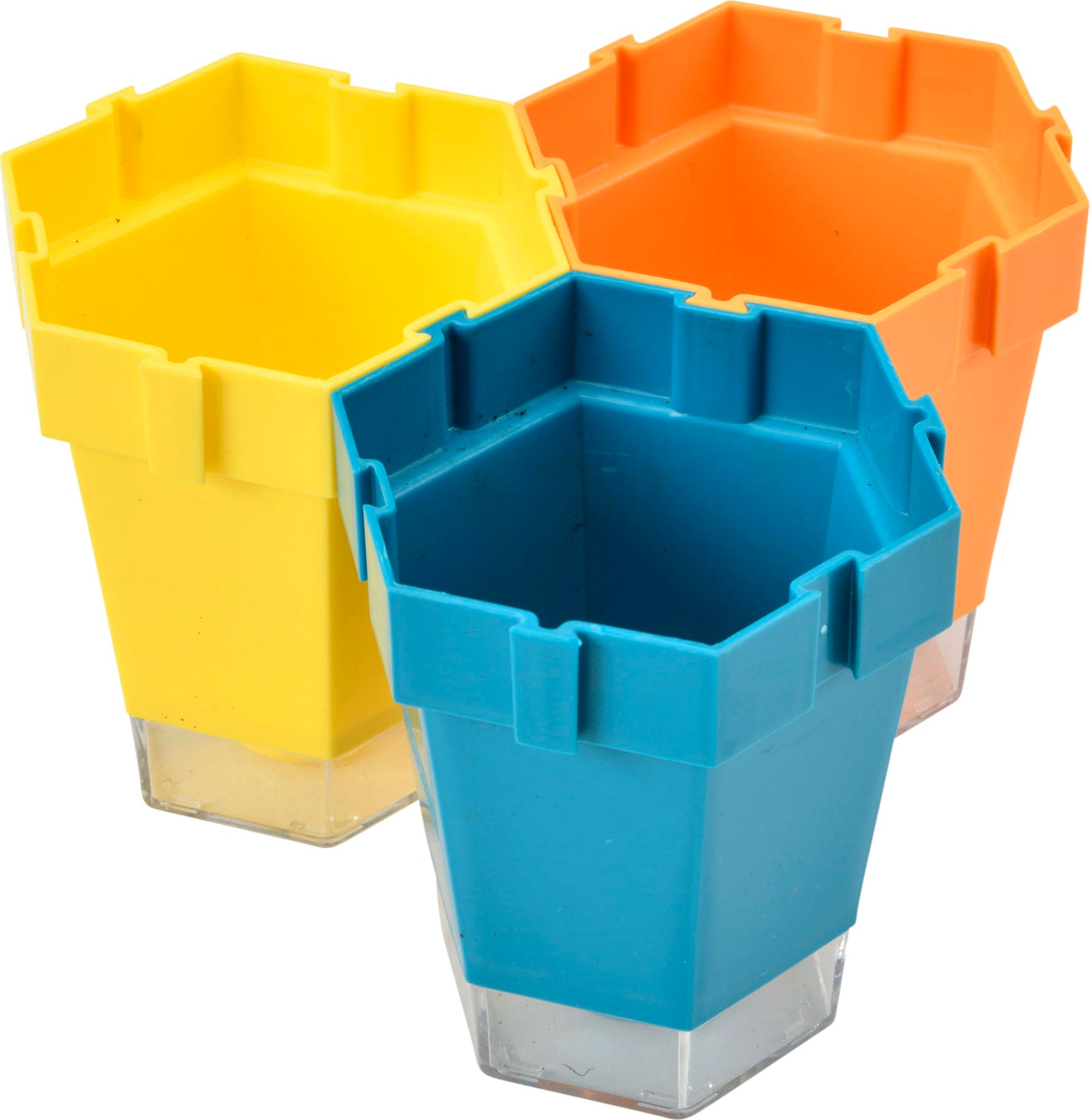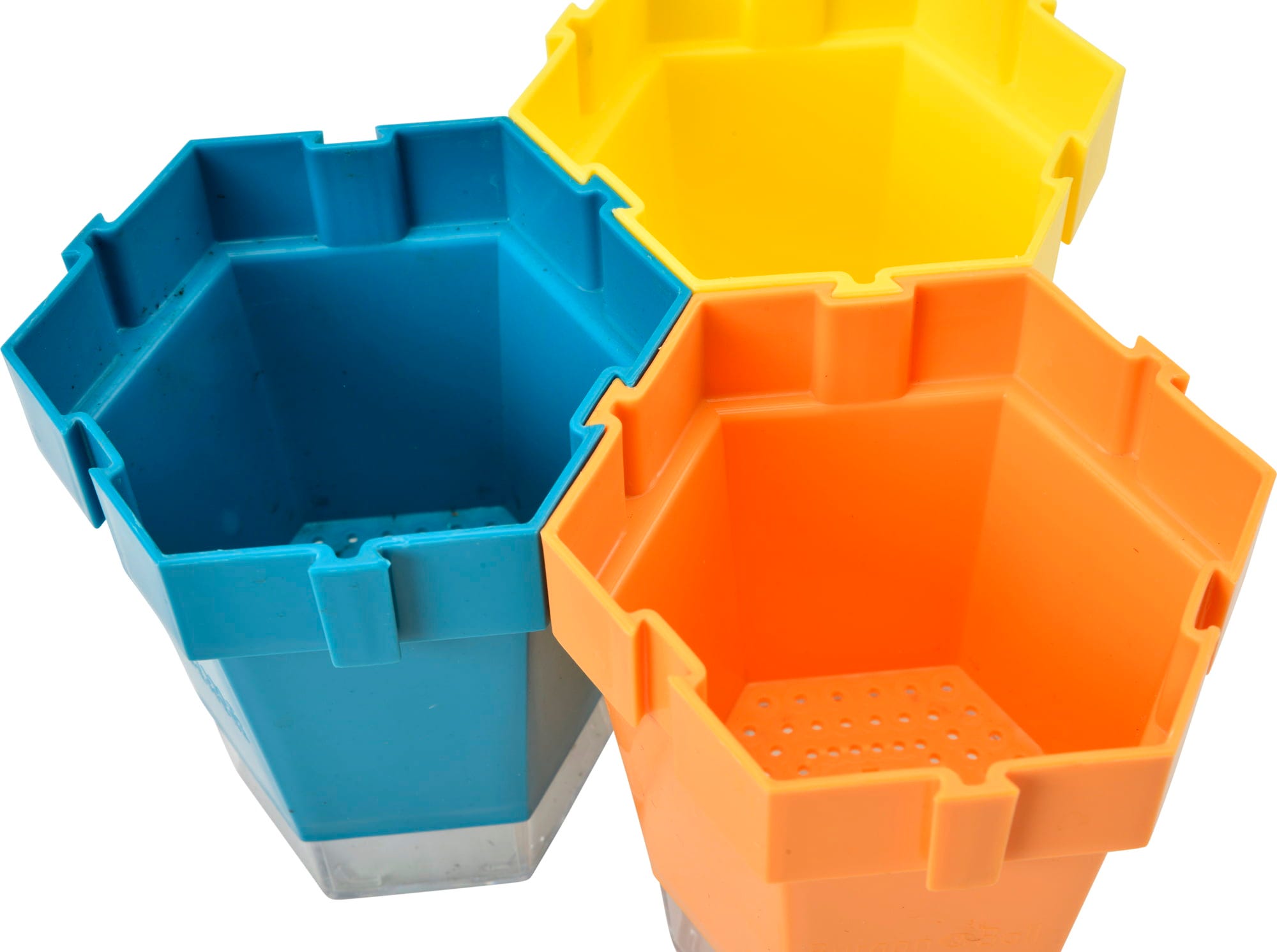 Com estes Vasos de Cultivo coloridos, podes despertar de forma lúdica o amor pela jardinagem nos teus filhos. São ideais tanto para o cultivo como para ervas aromáticas e plantas pequenas, e encantam com um Sistema de Encaixe especial que permite conectá-los como se fossem peças de construção. Assim, os teus filhos podem criar as formas mais variadas com um ou mais conjuntos e construir o seu próprio Jardim de Interior.