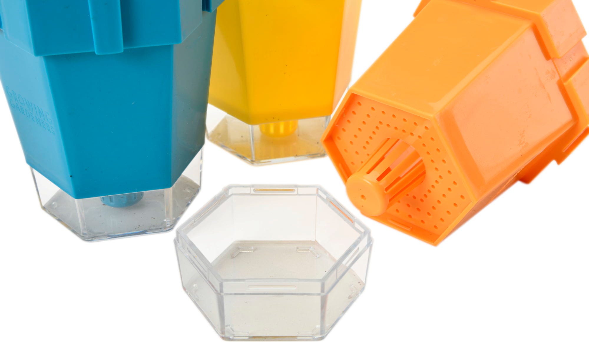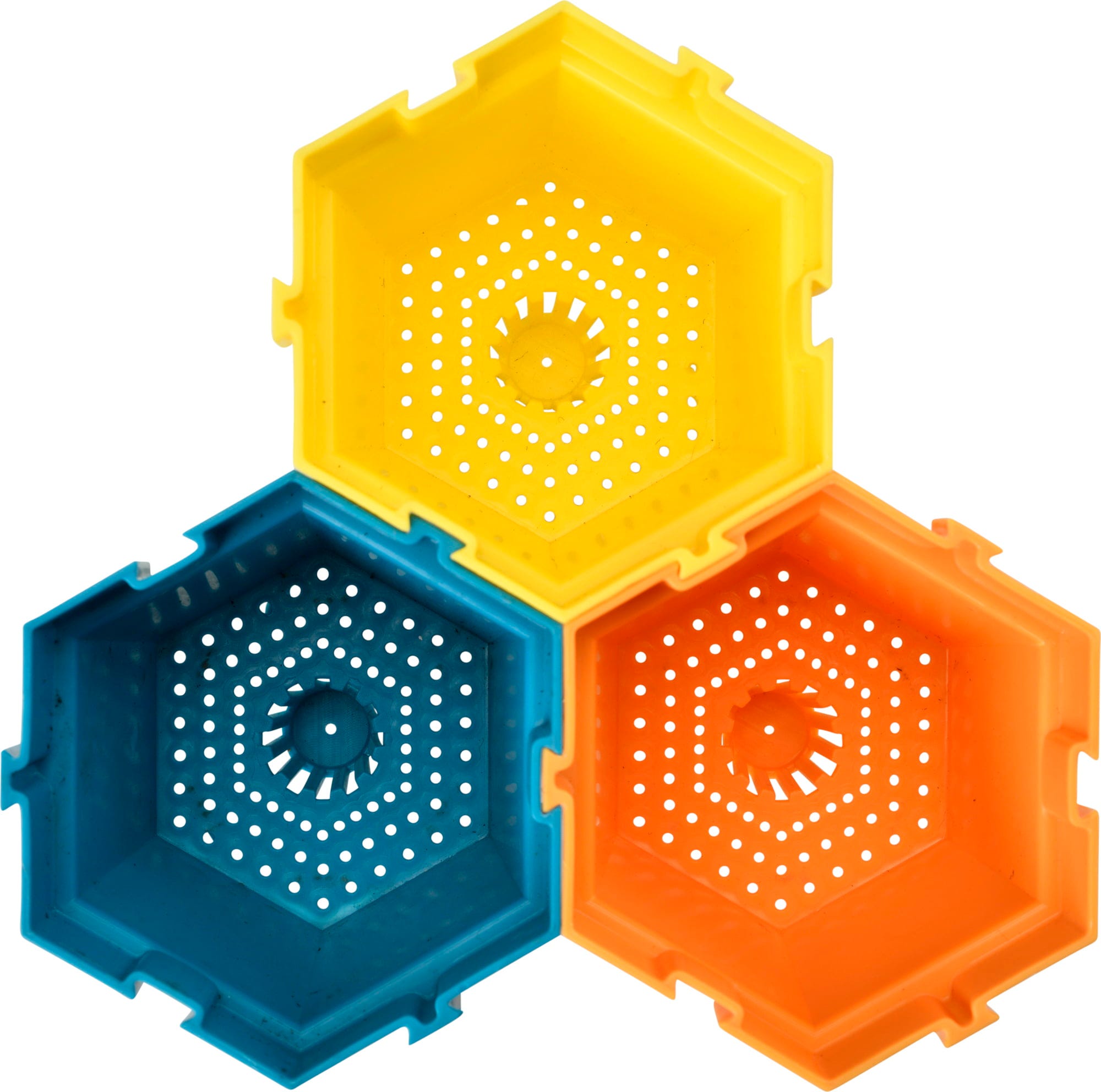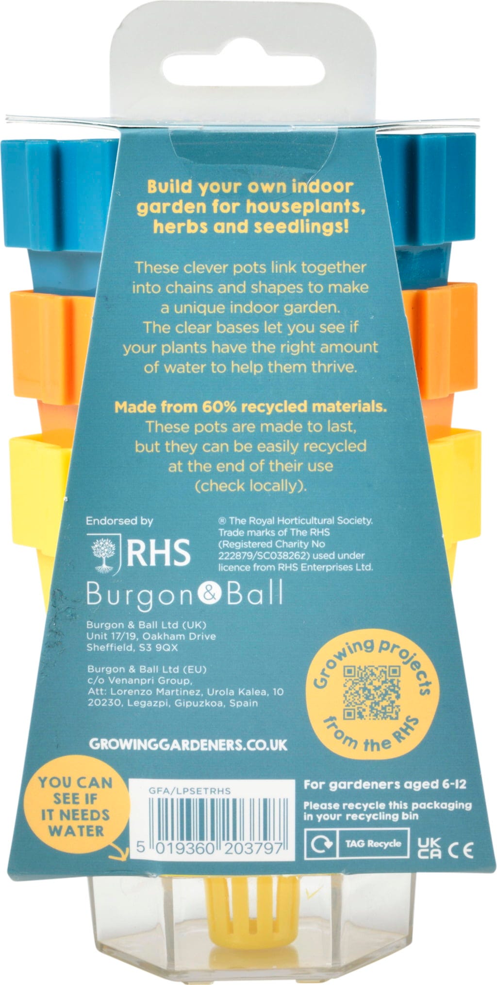 Com estes Vasos de Cultivo coloridos, podes despertar de forma lúdica o amor pela jardinagem nos teus filhos. São ideais tanto para o cultivo como para ervas aromáticas e plantas pequenas, e encantam com um Sistema de Encaixe especial que permite conectá-los como se fossem peças de construção. Assim, os teus filhos podem criar as formas mais variadas com um ou mais conjuntos e construir o seu próprio Jardim de Interior.