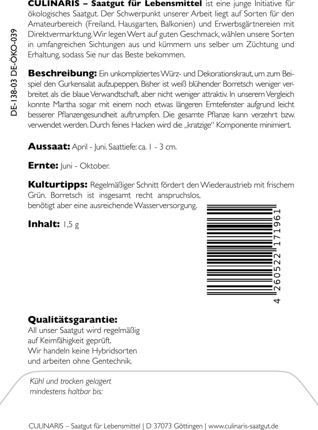 comentários em português para Culinaris Borragem Branca Bio "Martha"