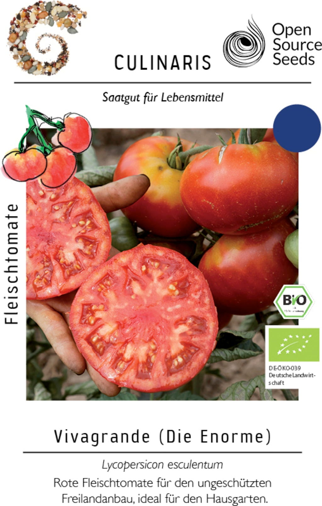 Tomate Bio "Ar Livre Vivagrande" é uma variedade de tomate coração de boi, de crescimento reduzido e produtiva, é particularmente adequada para o cultivo ao ar livre e produz muitos frutos de aroma suave com excelente qualidade, que são ótimos para cozinhar.
