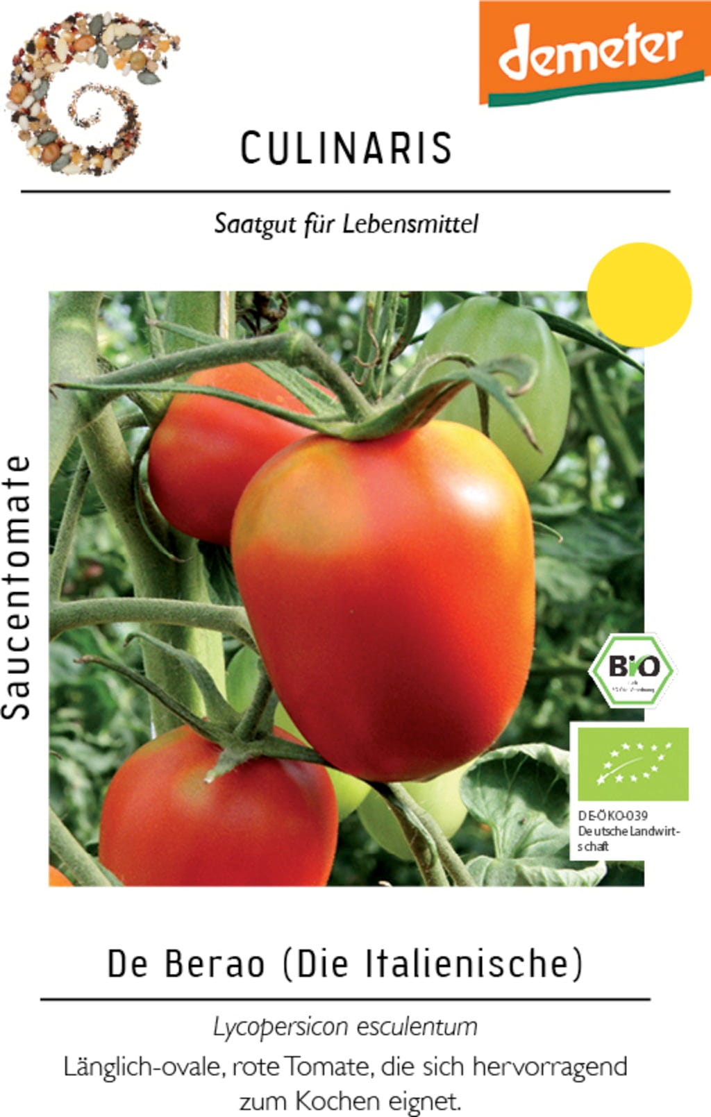 O Tomate de Molho Bio De Berao é uma variedade pode ser cultivada ao ar livre sem proteção e produz frutos ovais-alongados com um sabor suave, ideais para cozinhar.