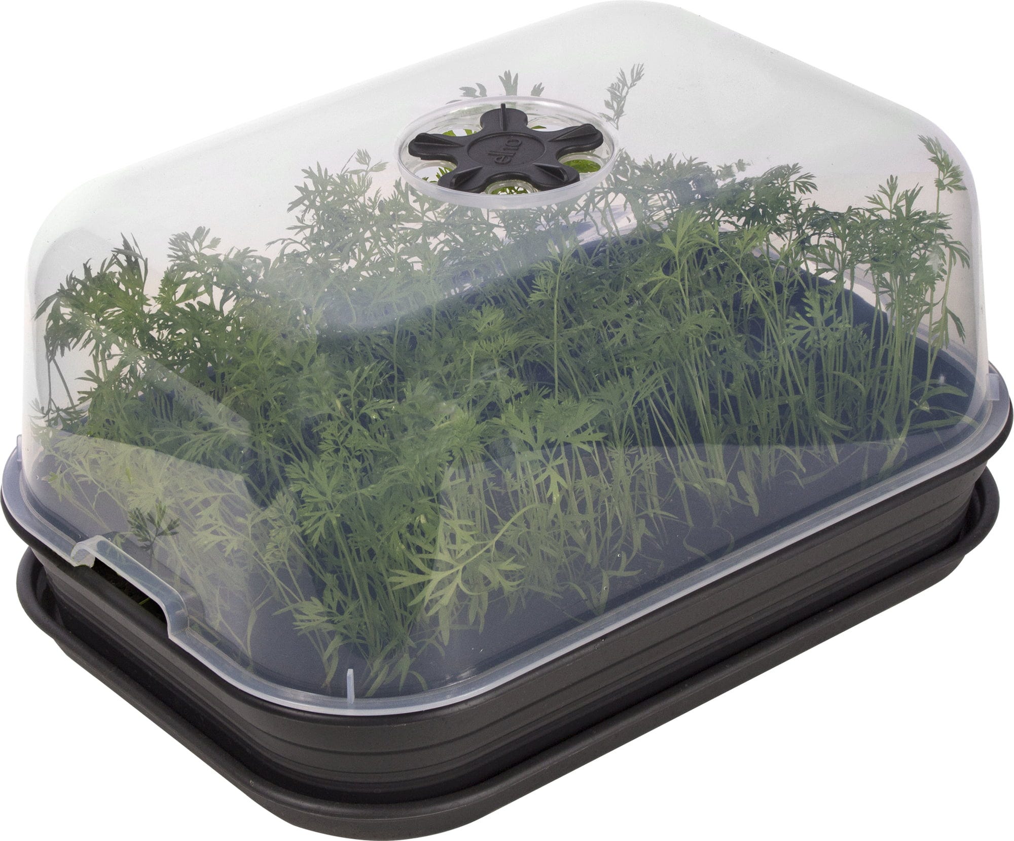 Com a cúpula de cultivo, é possível um controlo fácil da temperatura graças ao prático regulador rotativo. Além disso, garante uma circulação de ar perfeita, o que promove o processo de crescimento da planta. Resistente ao gelo até -40°C.