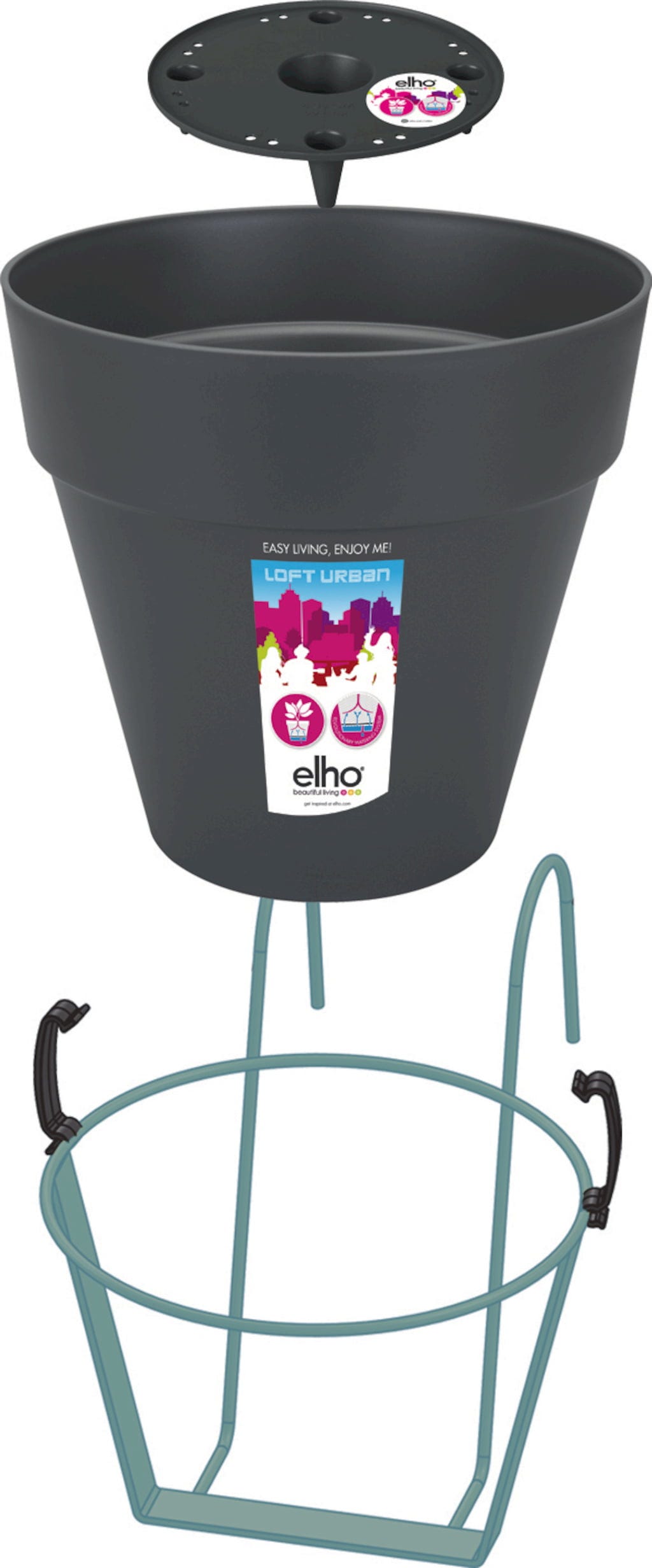 Com o suporte para vasos para o corrimão da varanda, transforme a sua varanda num oásis verde num abrir e fechar de olhos. O vaso é fornecido juntamente com o suporte e pode ser facilmente pendurado na varanda. E graças ao reservatório de água, onde a água da chuva é armazenada, as suas plantas recebem sempre água quando precisam. Dificilmente poderia ser mais simples e confortável.