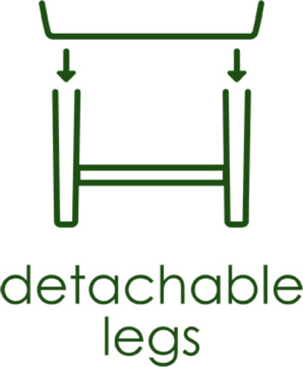 - Pernas removíveis para facilitar o transporte e poupar espaço no armazenamento
