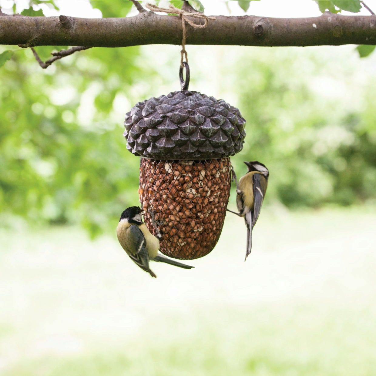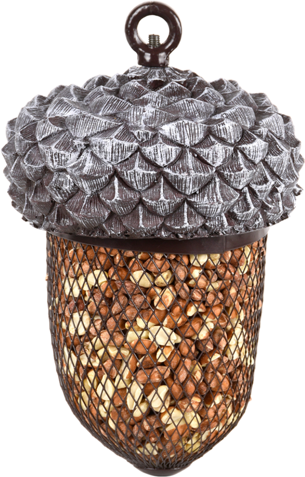 Este silo prova que um alimentador não tem de ter um aspeto aborrecido. Com o seu design encantador em forma de bolota, é um verdadeiro destaque que pode ser pendurado numa árvore, no terraço ou na varanda. Para encher, basta desaparafusar a parte superior. Cheio de amendoins e outras guloseimas, este silo decorativo tornar-se-á garantidamente o local favorito de muitas aves selvagens.