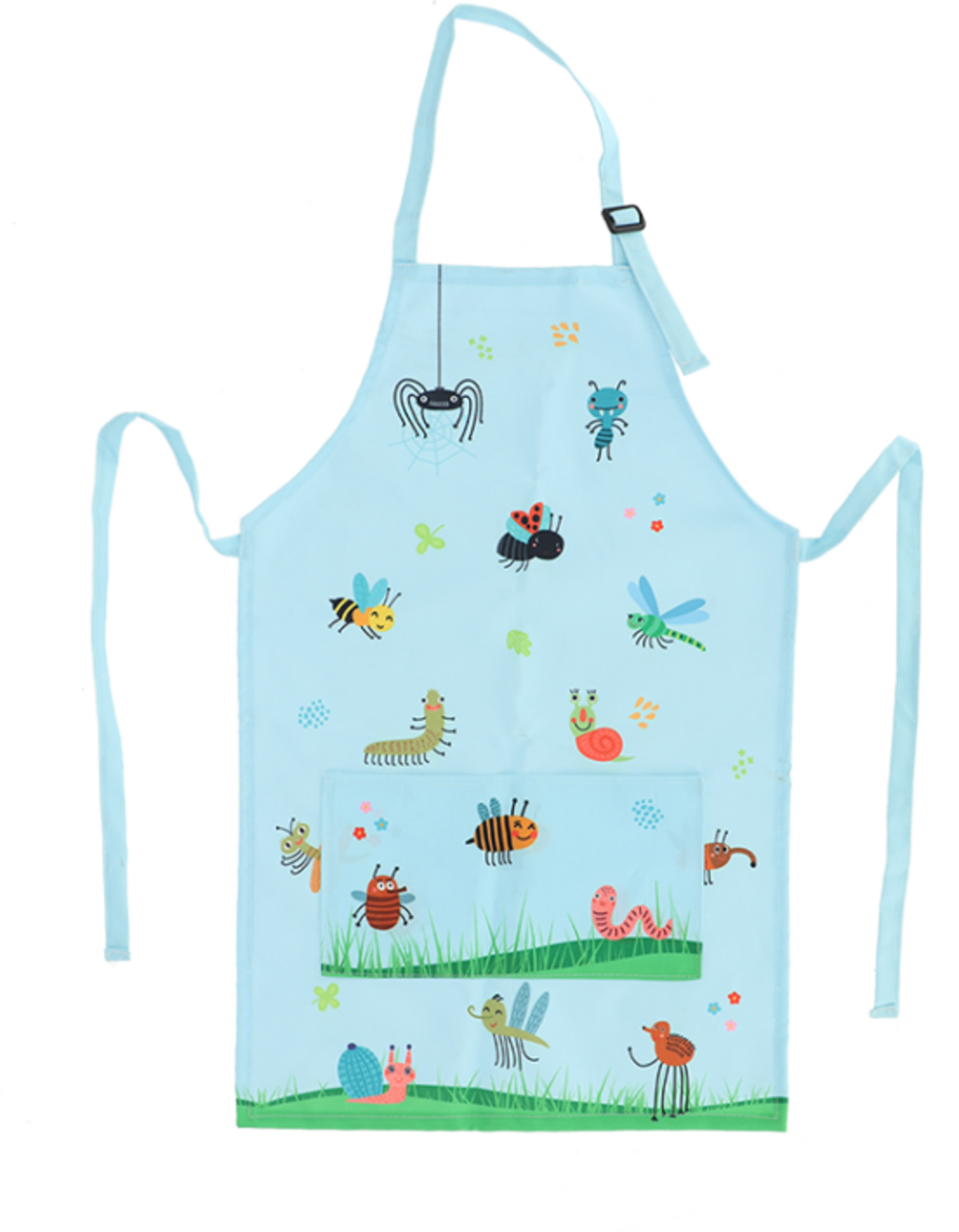 Este adorável avental com design de insetos protege a roupa de pequenos exploradores e jardineiros contra a sujidade, sendo indispensável para o trabalho no jardim.