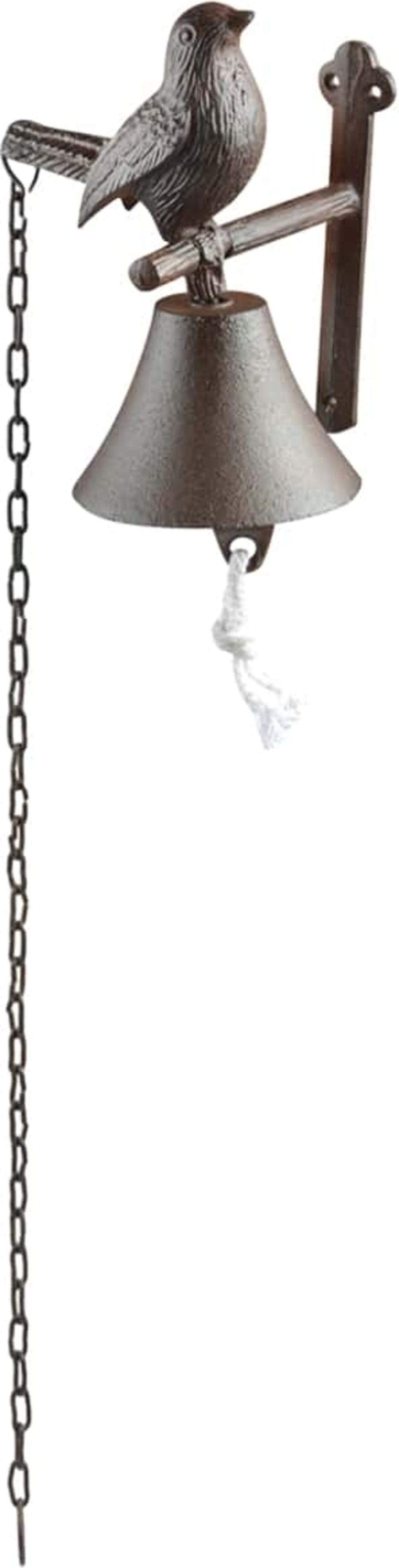 Esta campainha de porta, fabricada carinhosamente à mão, é um acessório muito especial para a zona de entrada e encanta sobretudo pelo seu adorável design de pássaro. O material é composto por ferro fundido robusto e duradouro, fabricado segundo uma antiga tradição. Os visitantes anunciam-se simplesmente puxando a corrente, o que resulta imediatamente num toque de sino cristalino.
