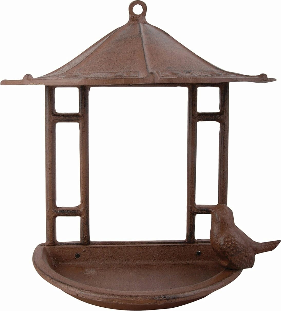 Este encantador comedouro para pássaros em ferro fundido robusto está equipado com um telhado que protege a comida da chuva. A forma aberta facilita a aproximação das aves e permite que pousem na borda. Com a sua parte traseira plana, pode ser montado numa parede em posição elevada, oferecendo assim um local seguro para uma refeição tranquila.