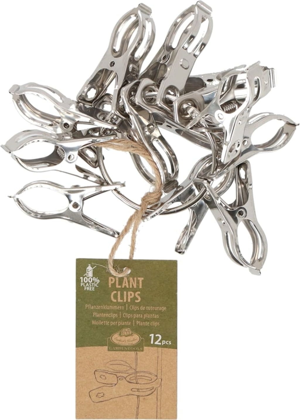 Os clipes para plantas feitos de metal robusto são ideais para apoiar plantas de interior, de jardim ou de estufa. Os caules são simplesmente fixados a uma treliça, arame ou vara com os clipes.