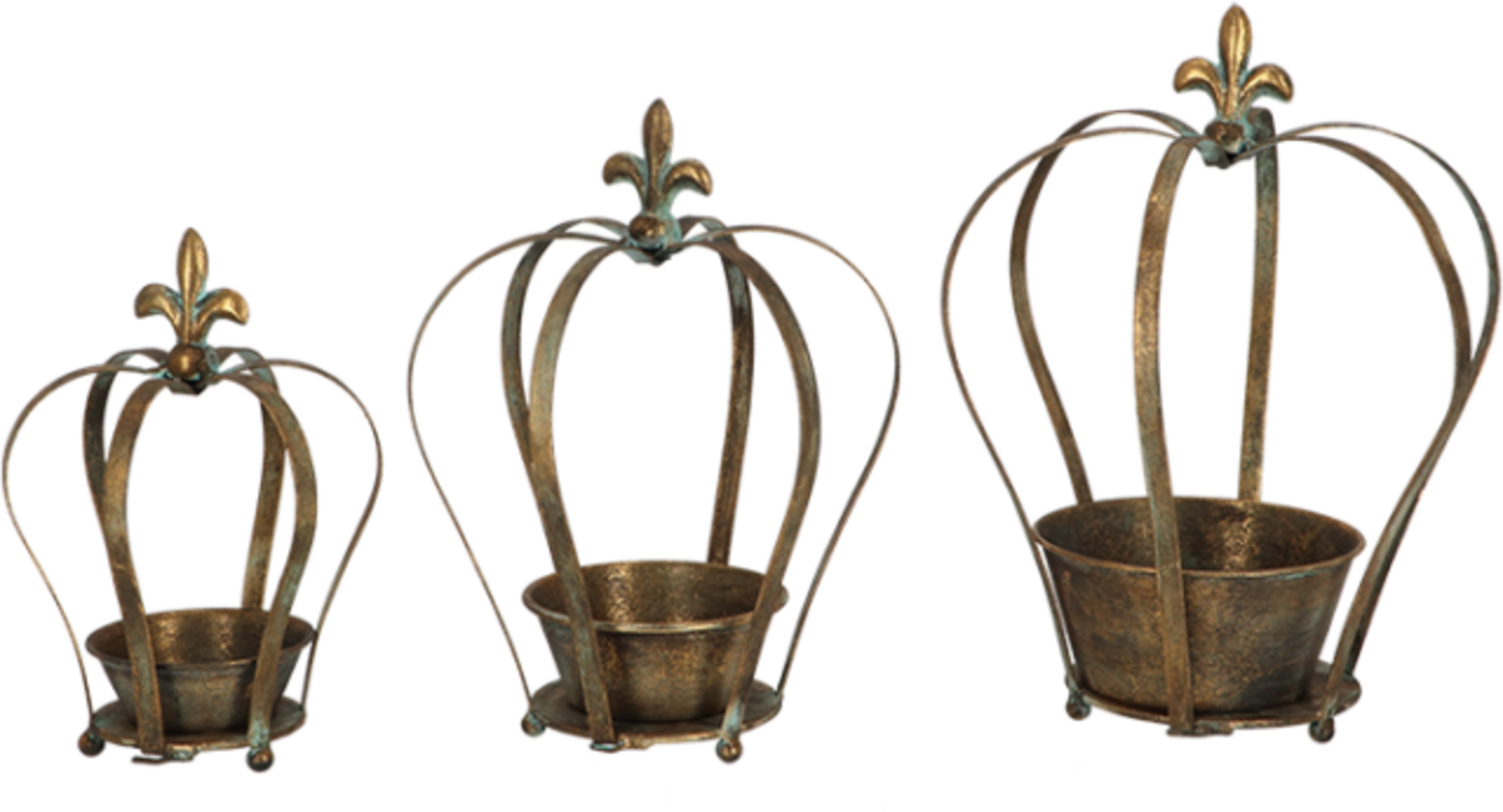 Esschert Design Conjunto de 3 Vasos Aged Metal Coroa