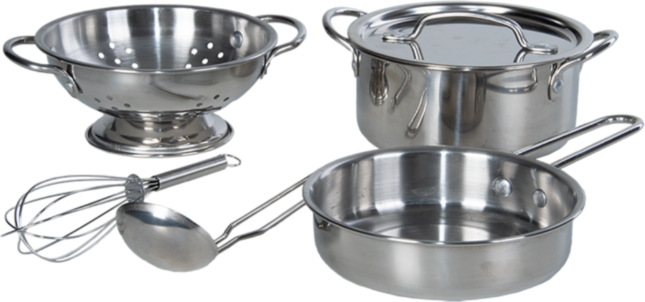- Conjunto de 6 peças composto por 1 frigideira, 1 panela, 1 tampa, 1 passador, 1 concha e 1 batedor de varas