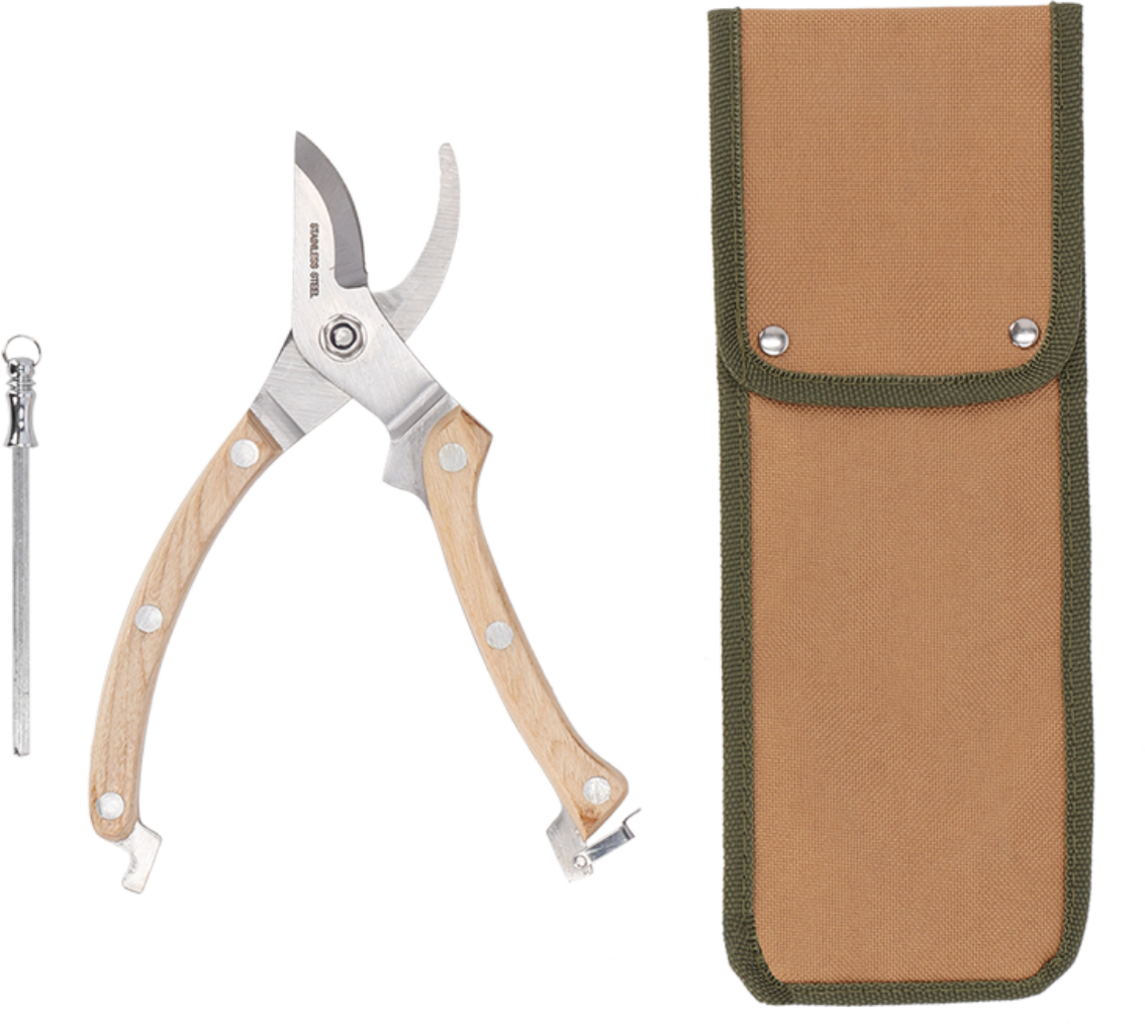 - Tesoura de poda e pedra de afiar