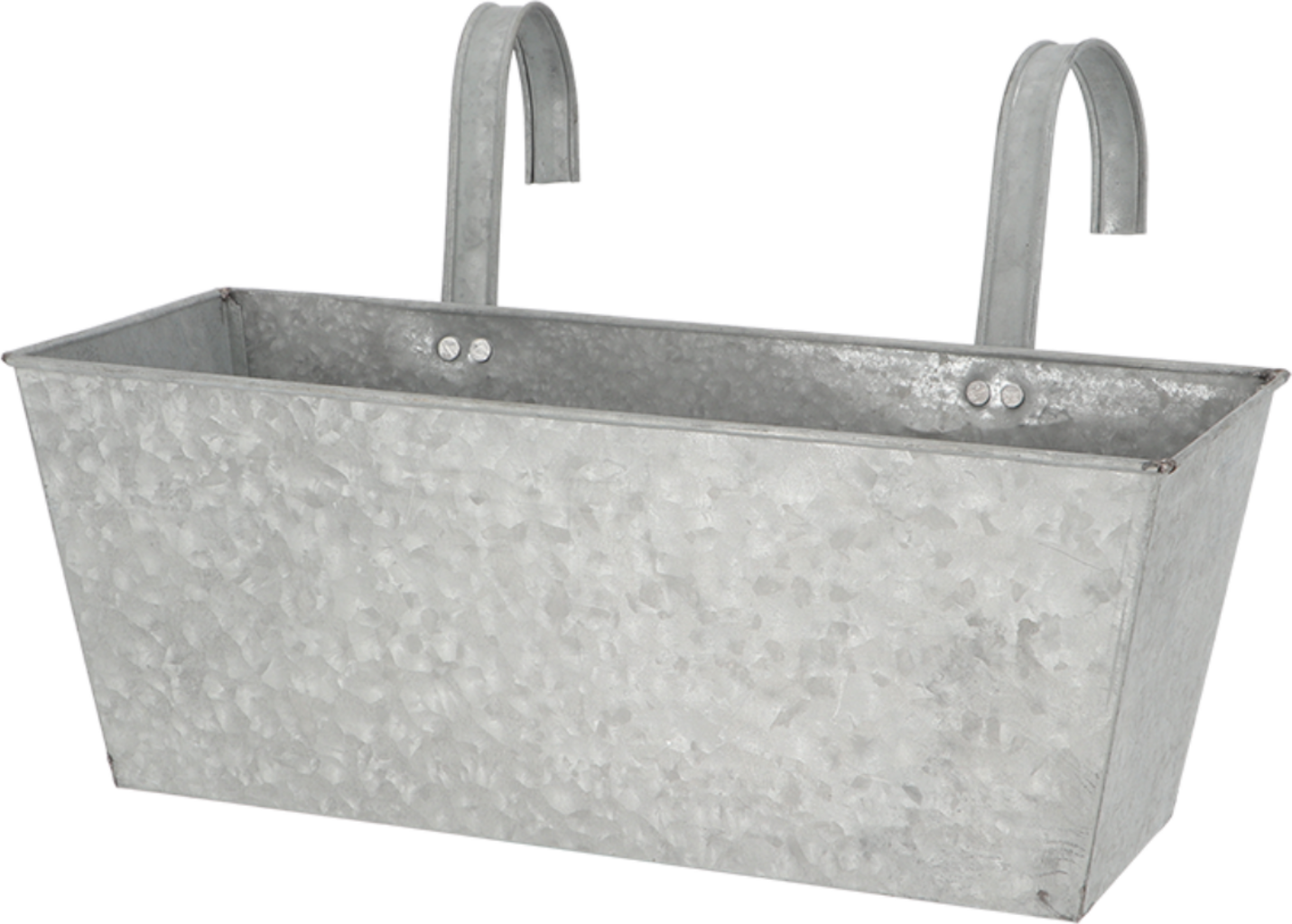 Floreira de varanda em chapa de zinco com acabamento em zinco antigo e 2 ganchos.