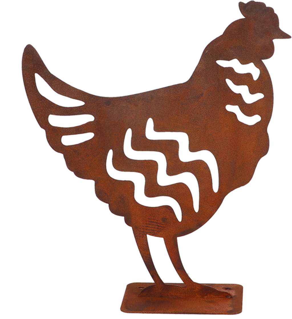 Este encantador elemento decorativo não é apenas para os jardins dos amantes de animais! A galinha em chapa de metal, fabricada com carinho, impressiona pelo seu design moderno com efeito de ferrugem e pelo acabamento detalhado e de alta qualidade.