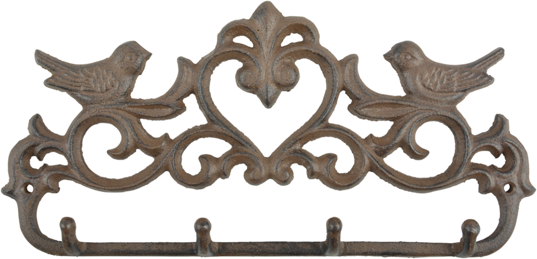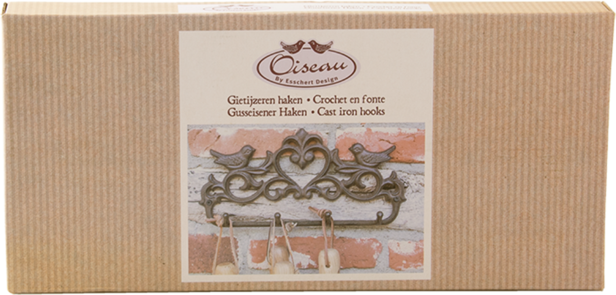 Sejam ferramentas de jardim, toalhas, malas ou roupas - com este suporte de ganchos decorativo, inúmeros utensílios podem ser guardados de forma decorativa. O design lúdico com dois pássaros alegres em aspeto antigo transforma um simples suporte num acessório charmoso para áreas interiores e exteriores.