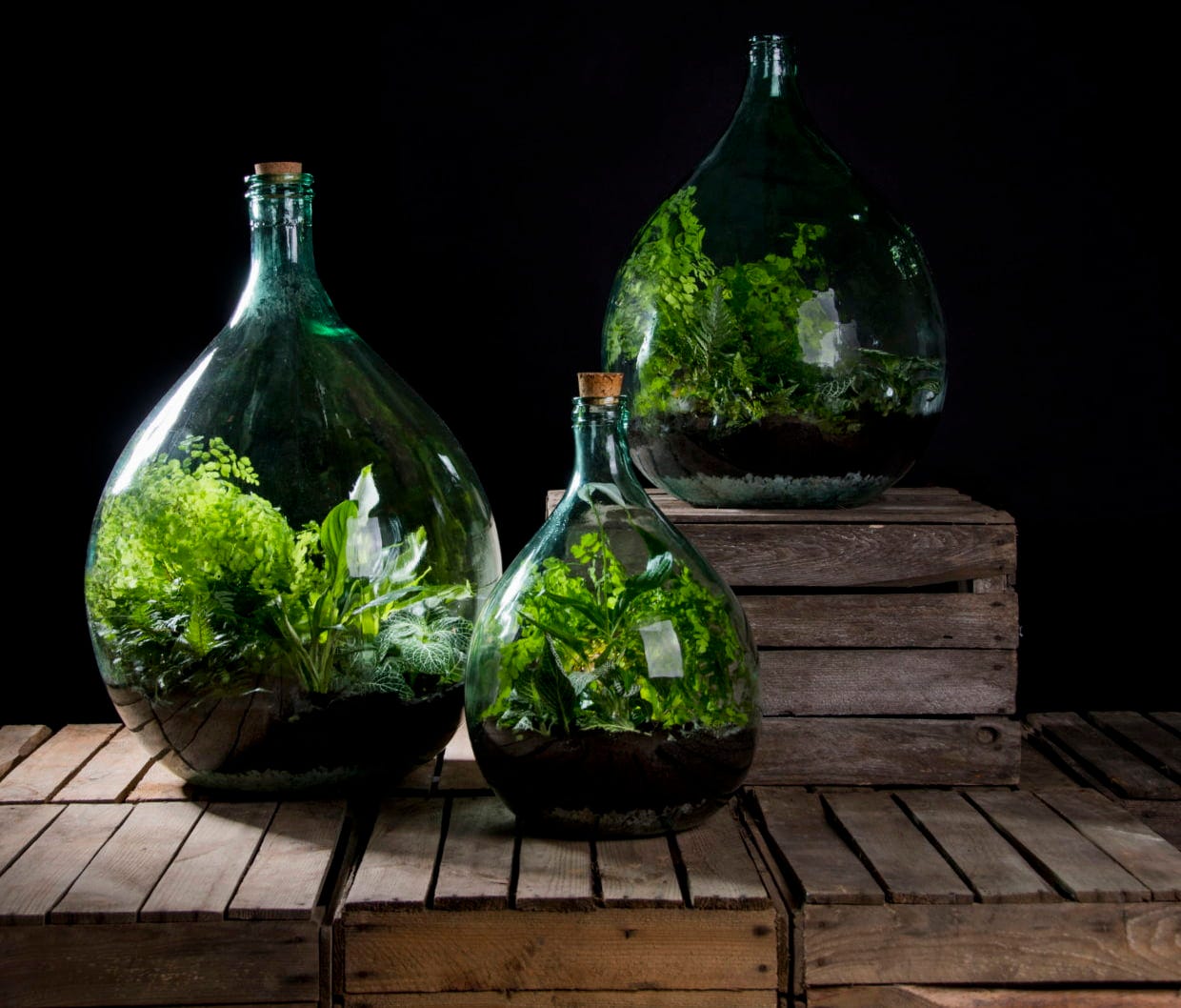 Com esta elegante garrafa para terrário, pode criar o seu próprio jardim em garrafa, pois aqui reina um ecossistema perfeito e as plantas prosperam maravilhosamente sem que tenha de fazer nada. O único fator externo necessário é a luz, e esta é garantida graças ao vidro.