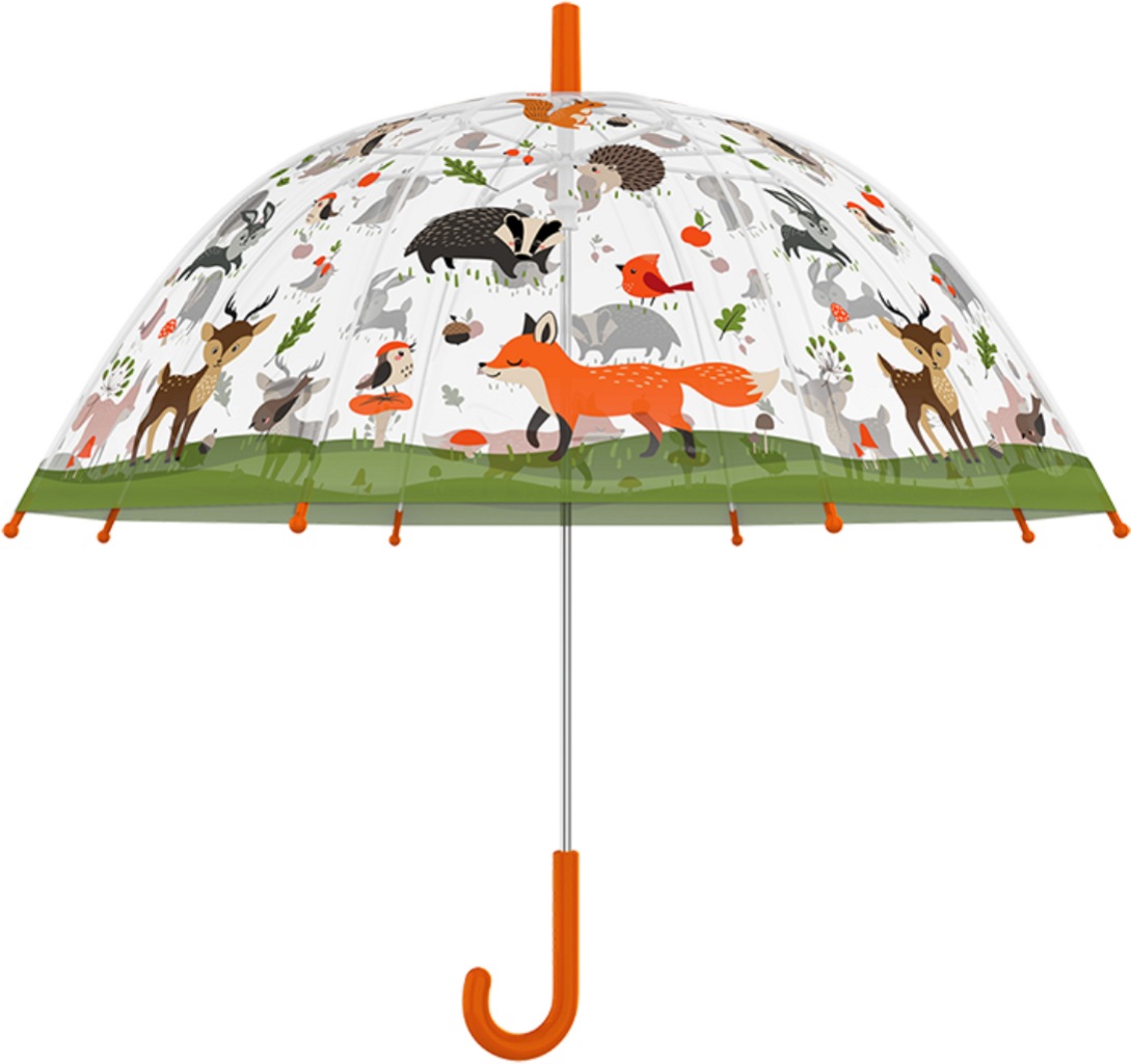 Com este guarda-chuva adorável, é possível atrair as crianças para fora, mesmo à chuva. O design transparente com animais alegres da floresta melhora o humor e não deixa margem para o tédio. O peso, a forma e as dimensões foram especialmente adaptados às crianças, para que estas consigam segurar bem o guarda-chuva e permaneçam sempre secas.