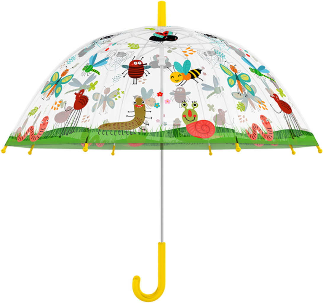 Com estes insetos bem-dispostos, um passeio à chuva torna-se numa diversão muito especial. O design transparente com abelhas, borboletas e companhia convida à descoberta e transforma os dias de chuva cinzentos em aventuras emocionantes. O peso, a forma e as dimensões foram especialmente adaptados às crianças, para que estas consigam segurar bem o guarda-chuva e permaneçam sempre secas.