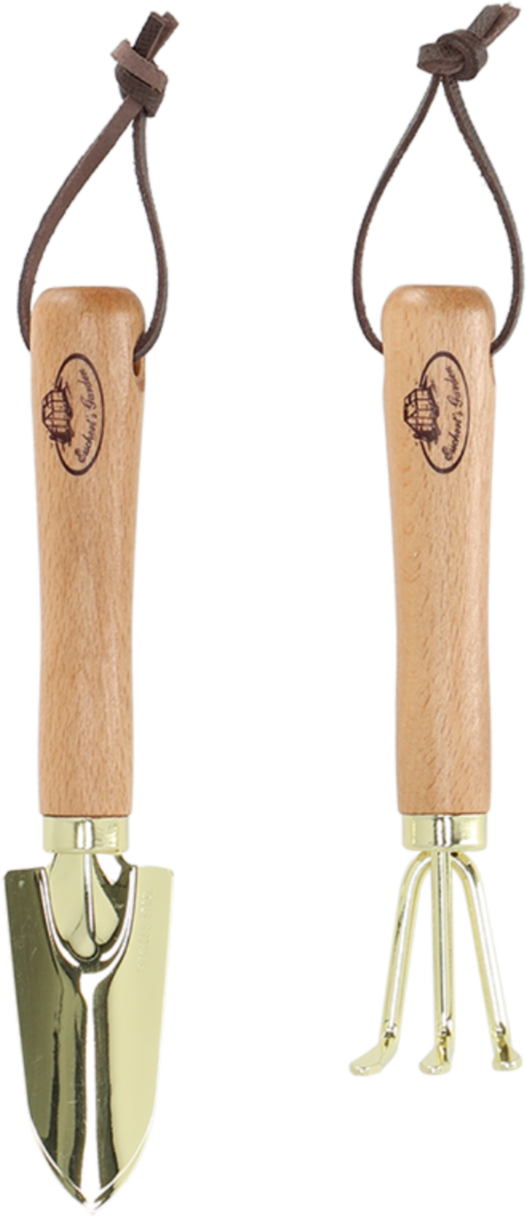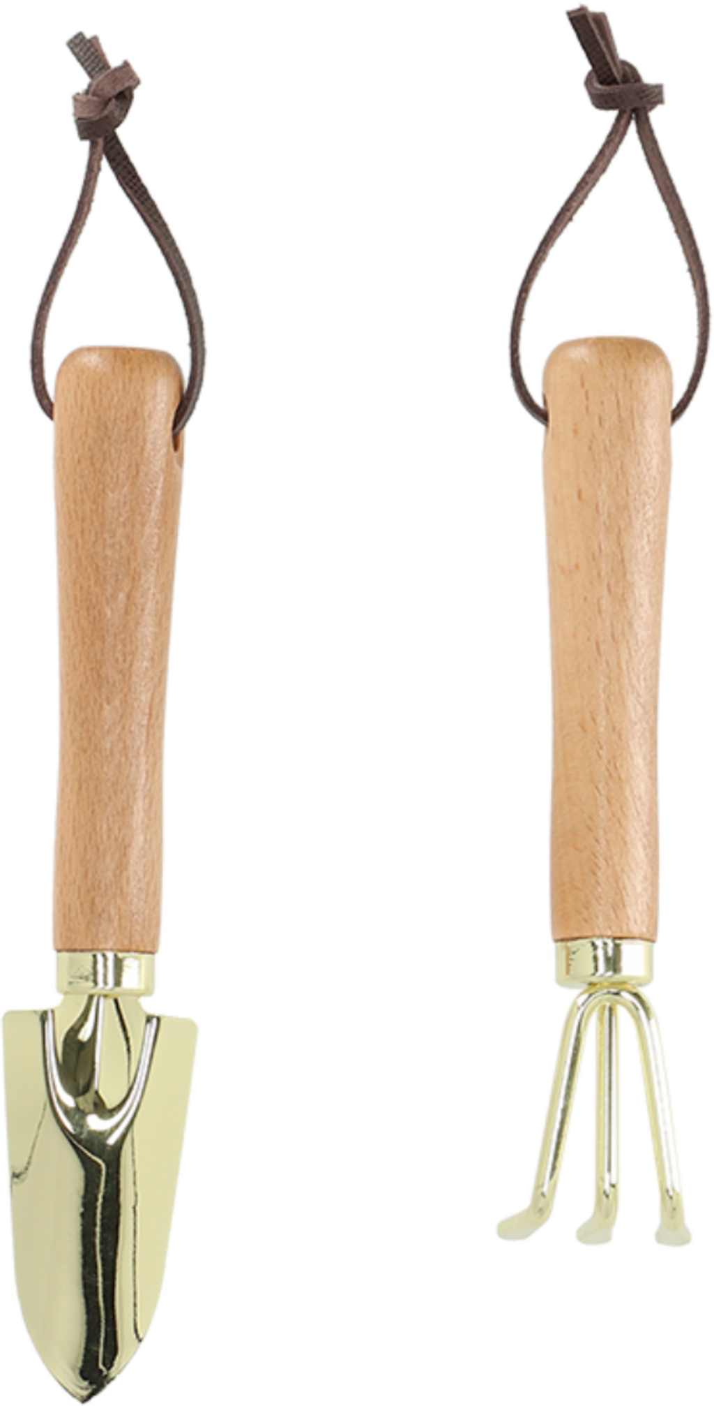 Estas duas mini ferramentas douradas são ideais para pequenos trabalhos de jardinagem e plantio. Seja para transplantar ou para cuidar da sua horta de ervas - este conjunto não o deixará ficar mal e permite-lhe jardinar com estilo. É também um presente maravilhoso para todos os que têm um "dedo verde".