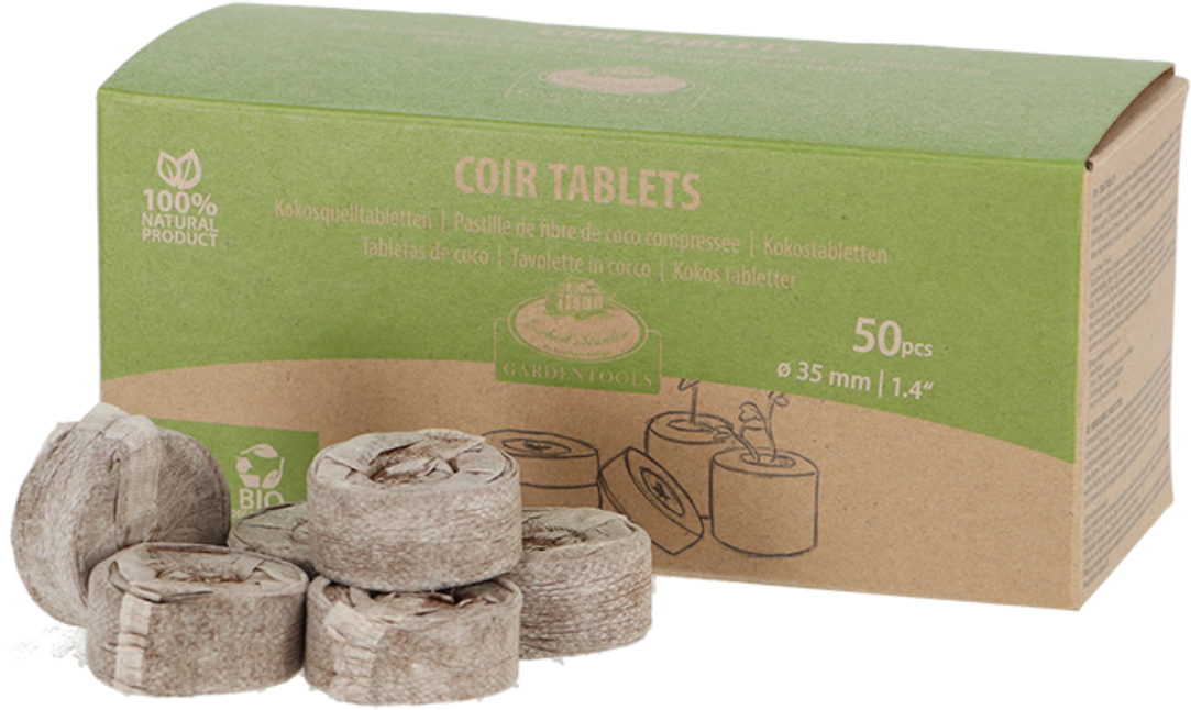 Estas pastilhas de coco são ideais para o cultivo de mudas em vasos ou estufas. Basta regar com água e as pastilhas expandem-se, absorvendo a água e proporcionando às plantas jovens um substrato húmido e rico em nutrientes. Sem turfa e fáceis de utilizar.