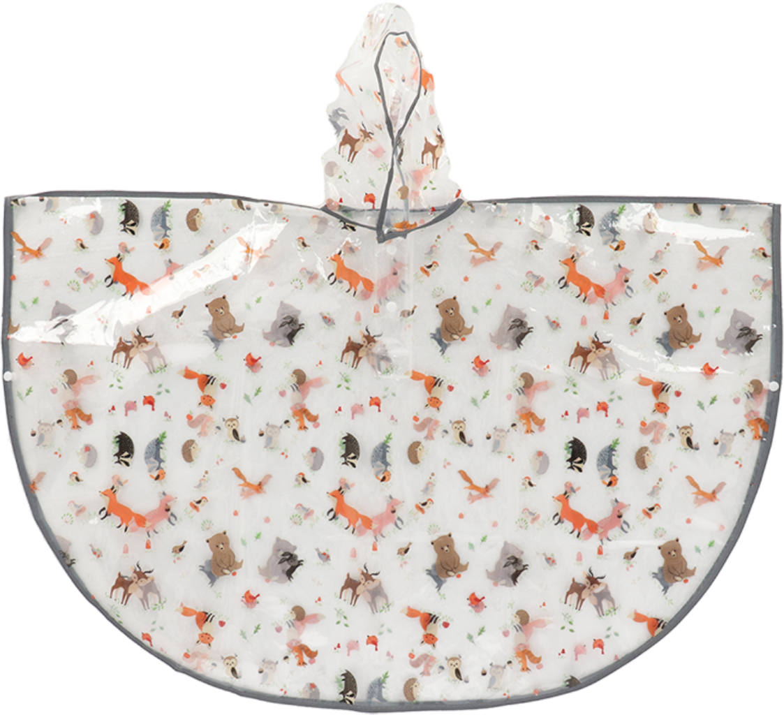 Esschert Design Poncho infantil "Animais da Floresta" transparente