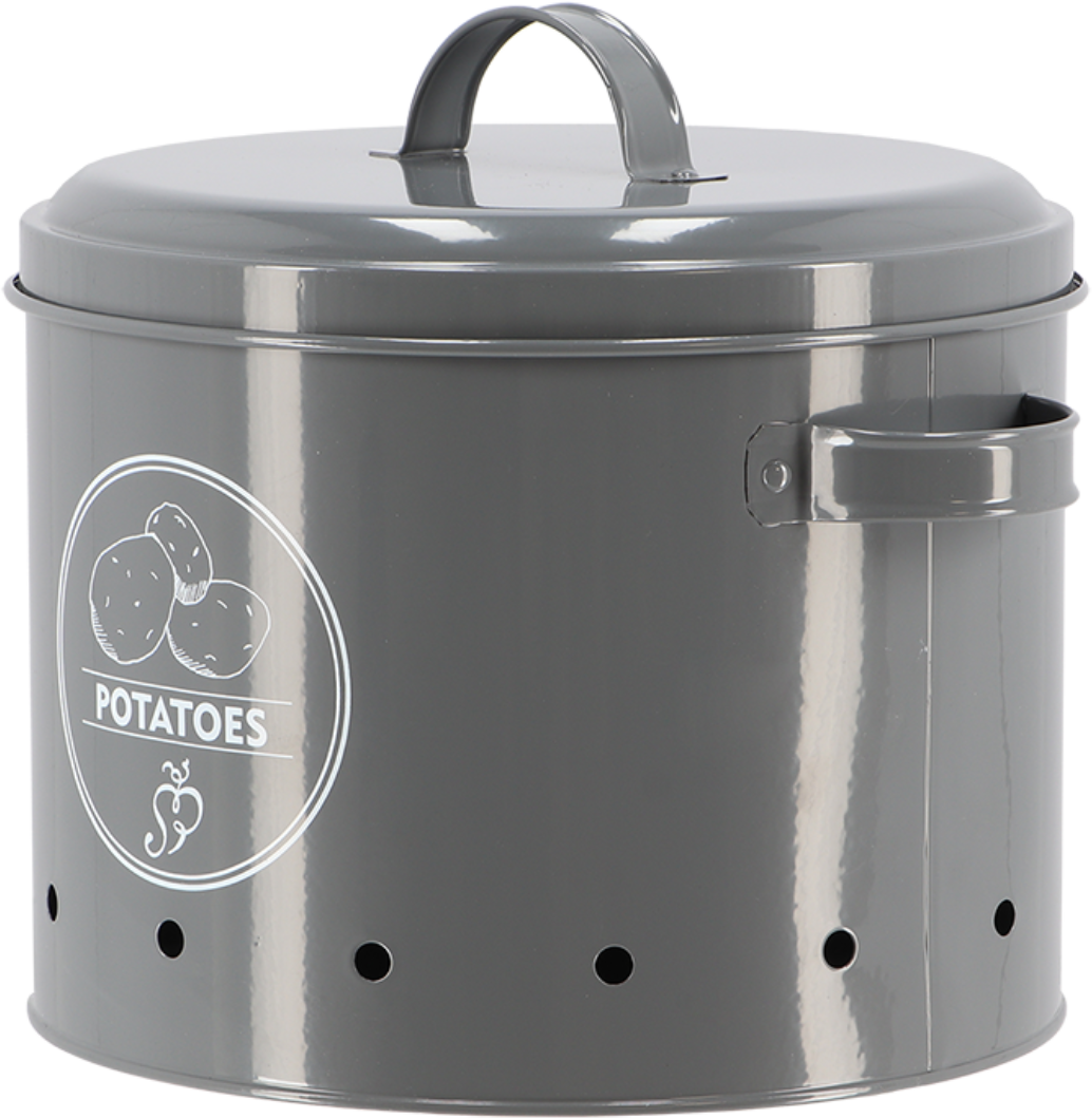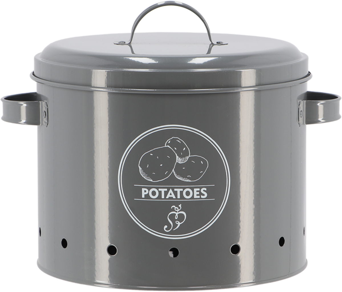 Este recipiente de armazenamento oferece às batatas o ambiente ideal, ou seja, um local escuro com boa ventilação. Visualmente, o recipiente apresenta-se num antracite intemporal com uma estampa bonita. Os orifícios laterais garantem uma ventilação ideal para que as suas batatas permaneçam frescas por muito tempo. O material em aço carbono confere-lhe uma longa vida útil, para que possa desfrutar dele durante muito tempo.
