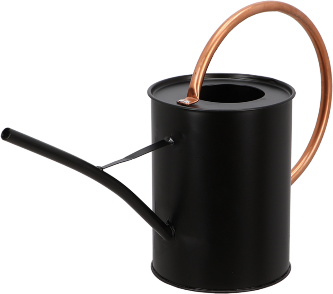 Regador elegante em preto com pega cor de cobre. Cuida das suas plantas e, além disso, tem um aspeto fantástico.