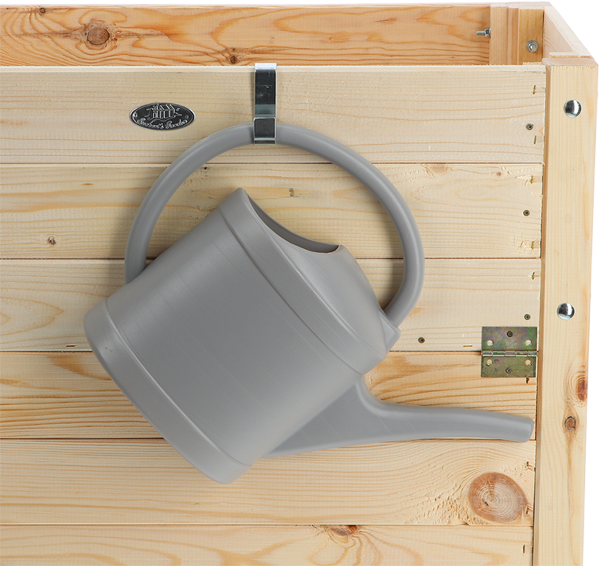 Uma solução semicircular, mas totalmente prática! Este modelo invulgar não só tem um aspeto espetacular, como o regador, com o seu lado plano, é também ideal para fixar num canteiro elevado ou numa parede. Basta pendurá-lo num gancho e terá o regador sempre à mão. Único, prático e elegante!
