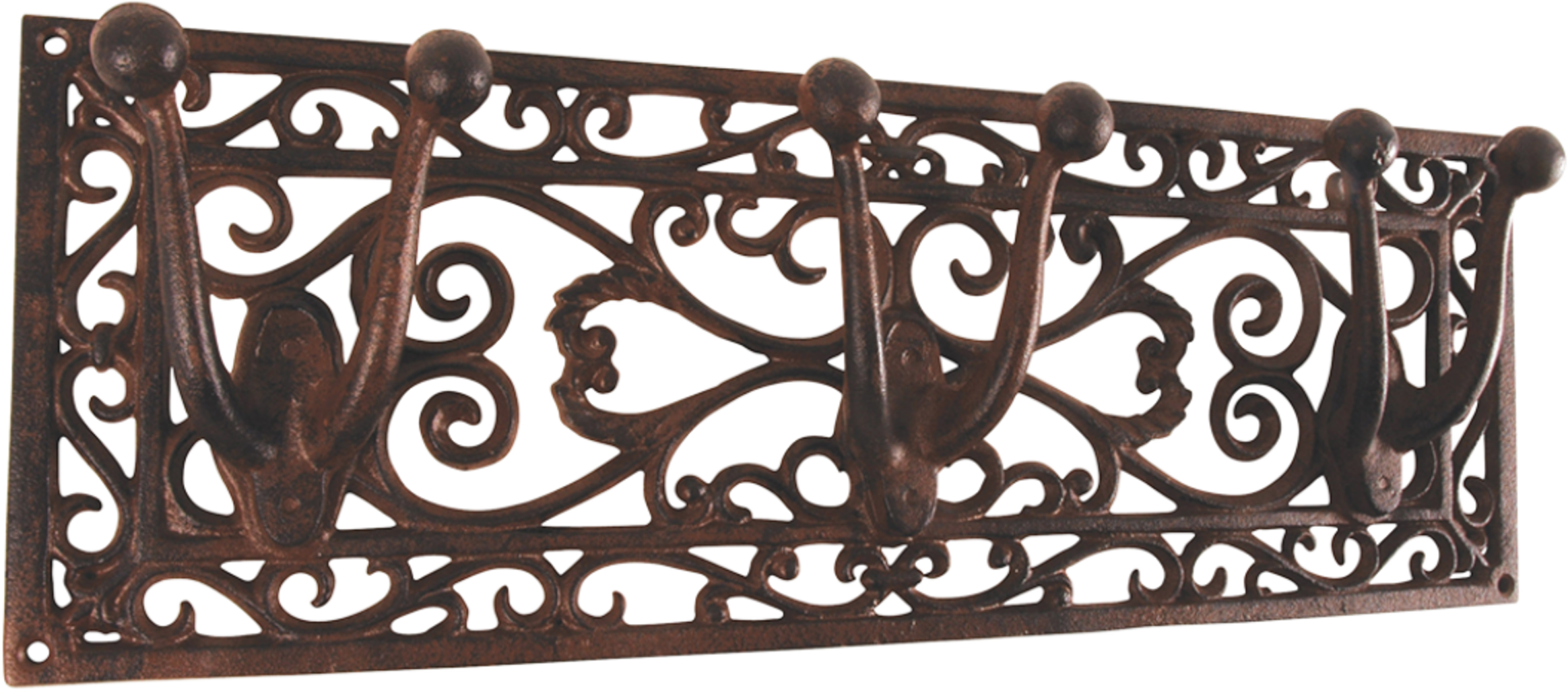Este suporte antigo para ferramentas de jardim em ferro fundido castanho-ferrugem não é apenas funcional, mas também se destaca pelo seu padrão arabesco, que torna qualquer parede num ponto de atração. Nos seis ganchos, pode pendurar maravilhosamente ferramentas de jardim, casacos e outros utensílios. Indispensável para uma casa organizada e elegante.
