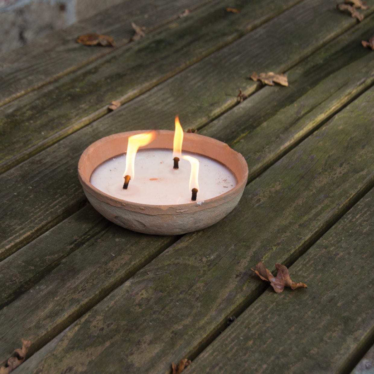 Vaso de terracota com vela de 3 pavios. 100% parafina. Tempo de queima aprox. 20 horas.