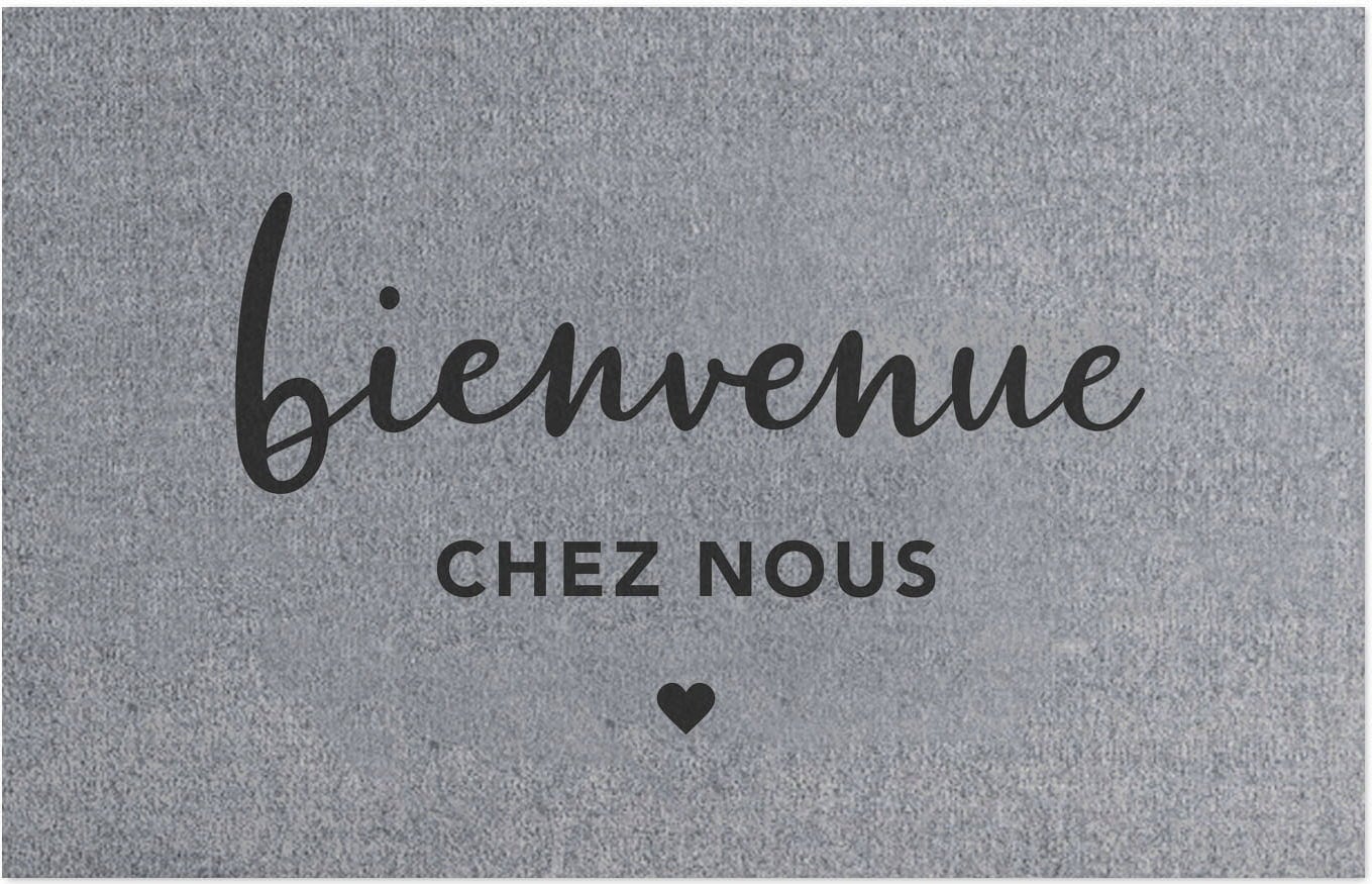 Wie könnte man seine Gäste freundlicher begrüßen als mit "Willkommen bei uns Zuhause". Die maschinenwaschbare Fußmatte mit liebevoll designtem französischem Schriftzug begeistert nicht nur optisch, sondern auch im Hinblick auf ihre hervorragenden Verwendungs- und Pflegeeigenschaften, da sie in der Maschine gewaschen werden kann.