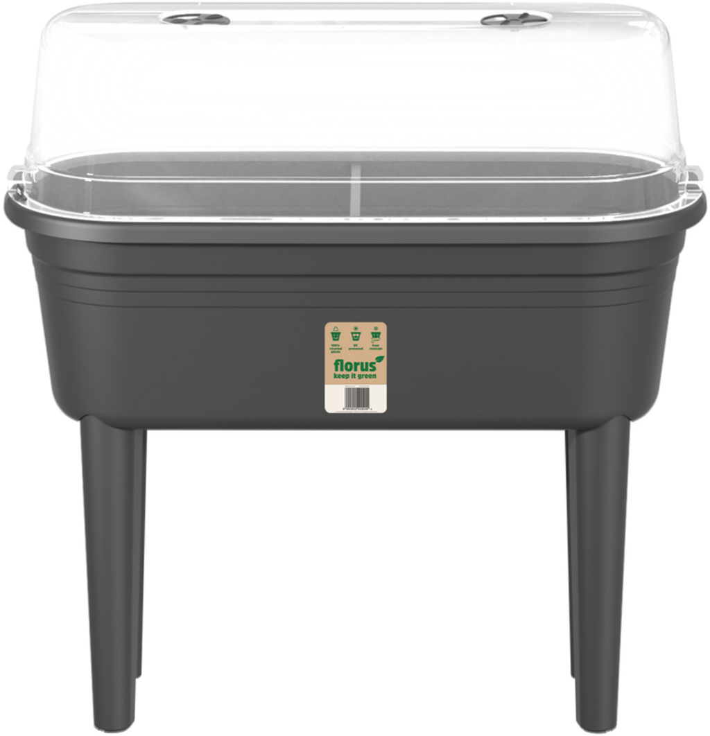 A mesa de cultivo é a solução ideal para quem quer cultivar ervas aromáticas, legumes ou flores frescas diretamente na varanda, no pátio ou no jardim - sem ter de se baixar. Com uma altura de trabalho de 26,4 cm, oferece o conforto perfeito para cuidar das tuas plantas.