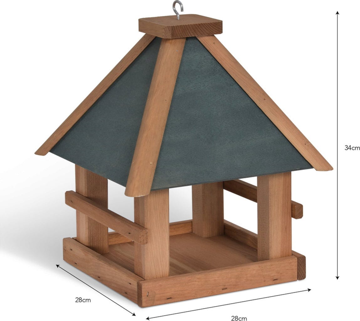 Este maravilhoso Alimentador em Madeira de Pinho não é apenas um belo acessório para o teu Jardim, mas também oferece, naturalmente, a oportunidade de alimentares Aves Silvestres com sementes, nozes e outras guloseimas. Com o gancho integrado, podes fixar facilmente o Alimentador numa árvore ou num suporte.