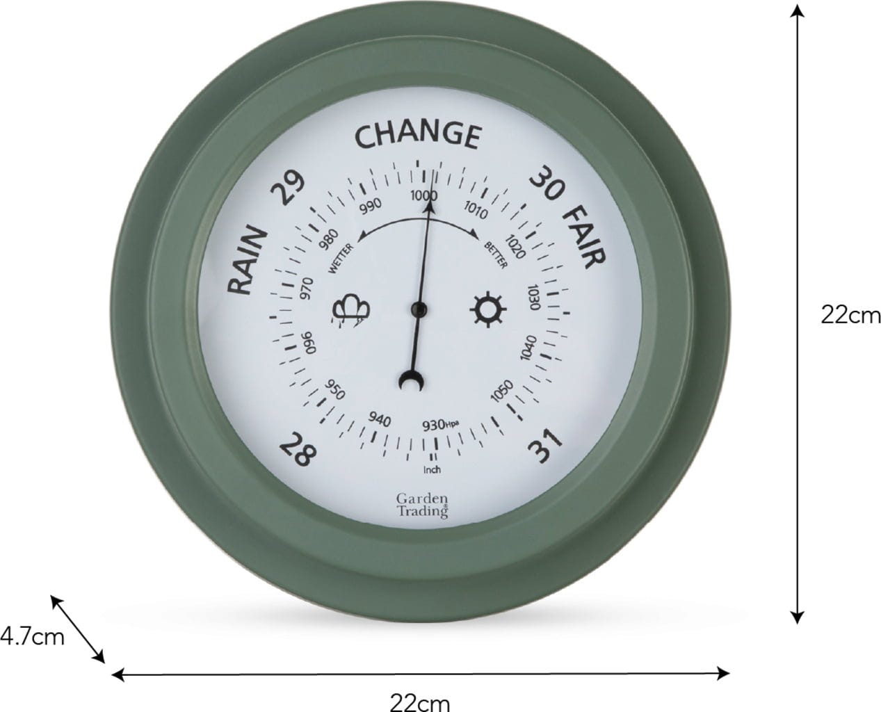 Especialmente como Jardineiro amador, não faz mal estares sempre atento ao Tempo. Este Barómetro prevê o Tempo de uma forma particularmente elegante, para que possas planear o teu trabalho no Jardim na perfeição. Basta pendurá-lo num local protegido e nunca mais te deixes surpreender por uma mudança repentina no Tempo.