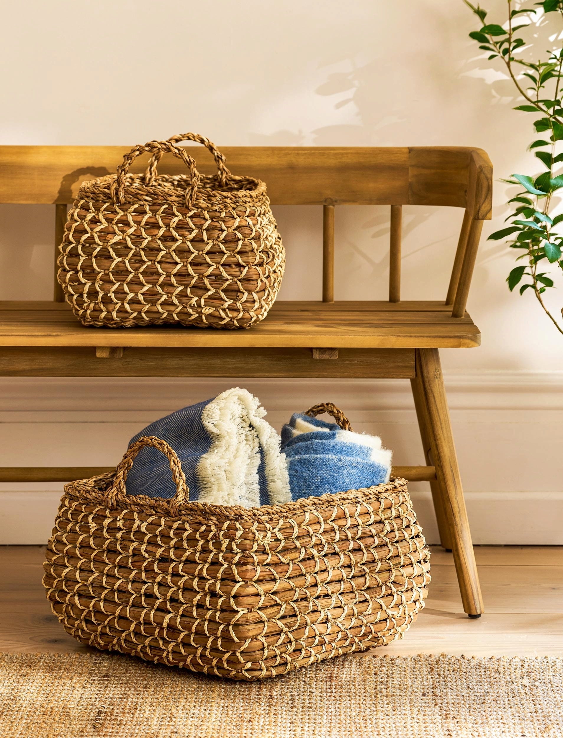 Este Conjunto composto por 2 Cestos é uma forma especialmente bonita de guardares os teus utensílios do dia a dia, como panos de cozinha e Toalhas. Assim, a tua casa parece sempre arrumada e tens as coisas importantes sempre à mão.