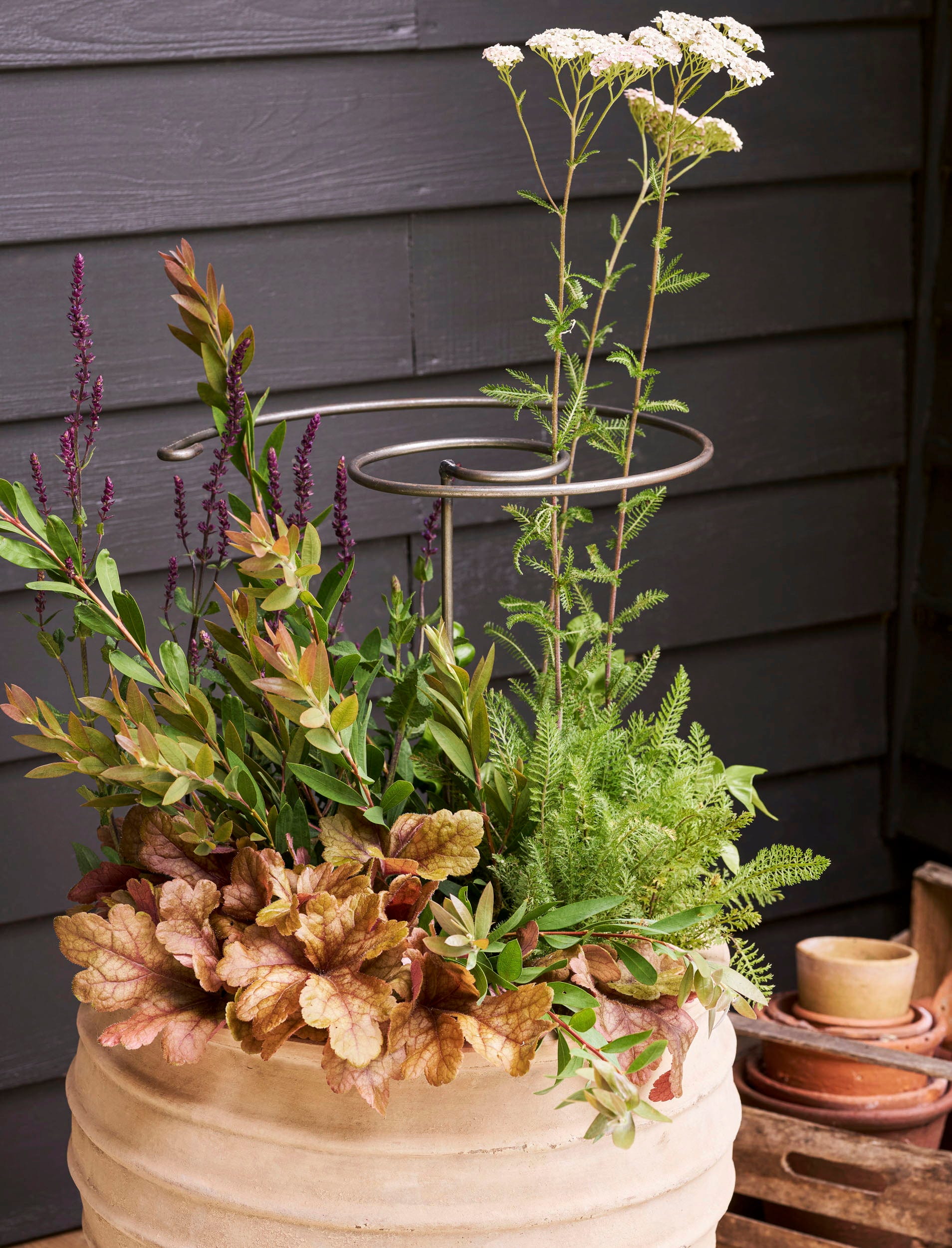 Estes Suportes para Plantas dão às tuas plantas perenes o apoio necessário para um Crescimento Saudável e Forte. O Design em Espiral não só tem um aspeto fantástico, como também permite ajustar os suportes de forma ideal às tuas plantas. Com o tempo, desenvolvem um Acabamento em Ferrugem atraente, o que realça ainda mais o seu Design elegante.