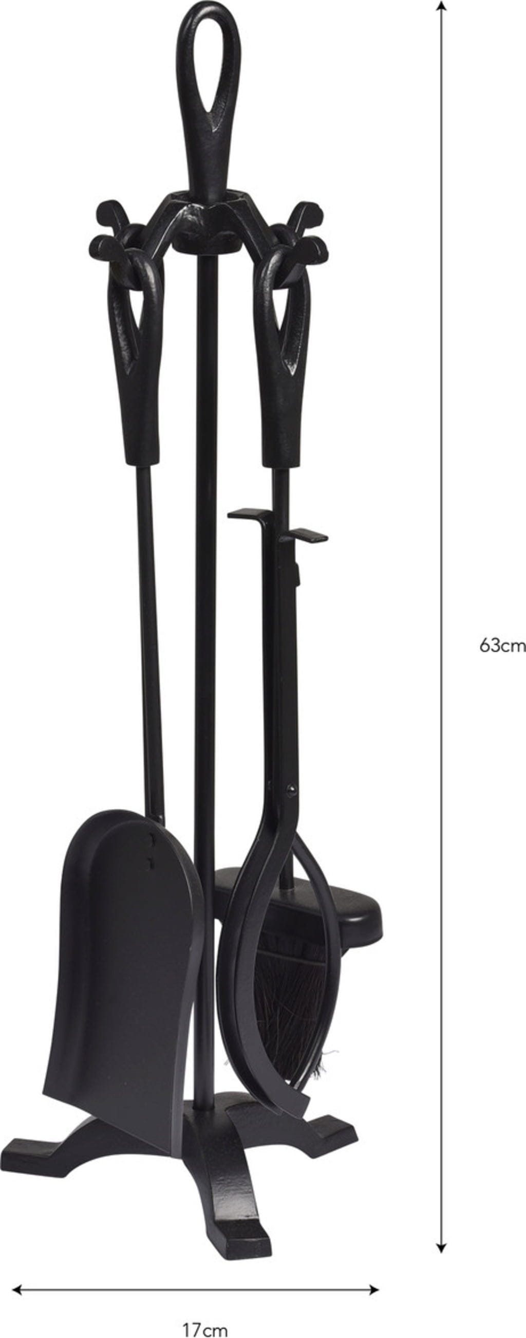 Este Conjunto de Acessórios para Lareira clássico, em Ferro Fundido robusto, inclui todas as ferramentas essenciais para cuidares de uma lareira aberta ou de um recuperador de calor: Atiçador, Pinça, Vassoura e Pá. Não só te oferece um apoio prático, como também confere à tua sala de estar um carácter rústico e acolhedor, ideal para a estação fria.
