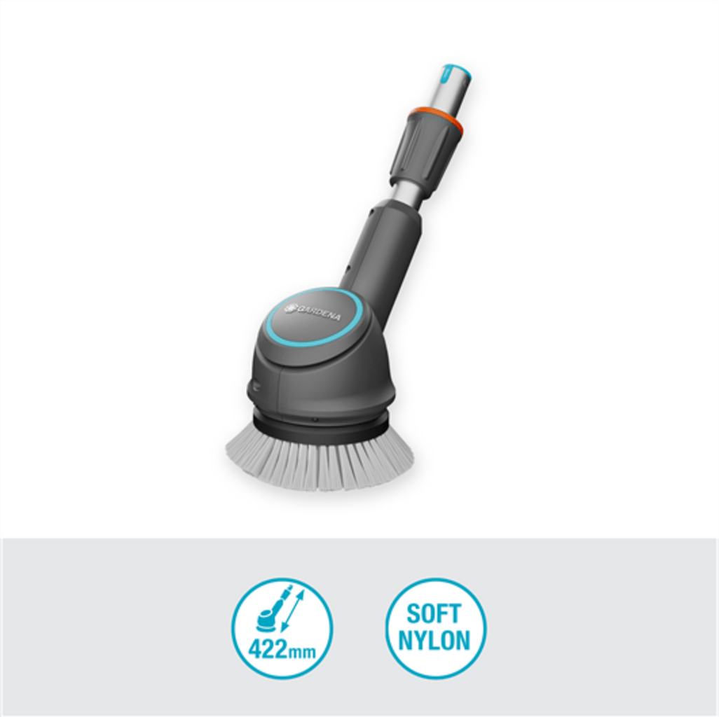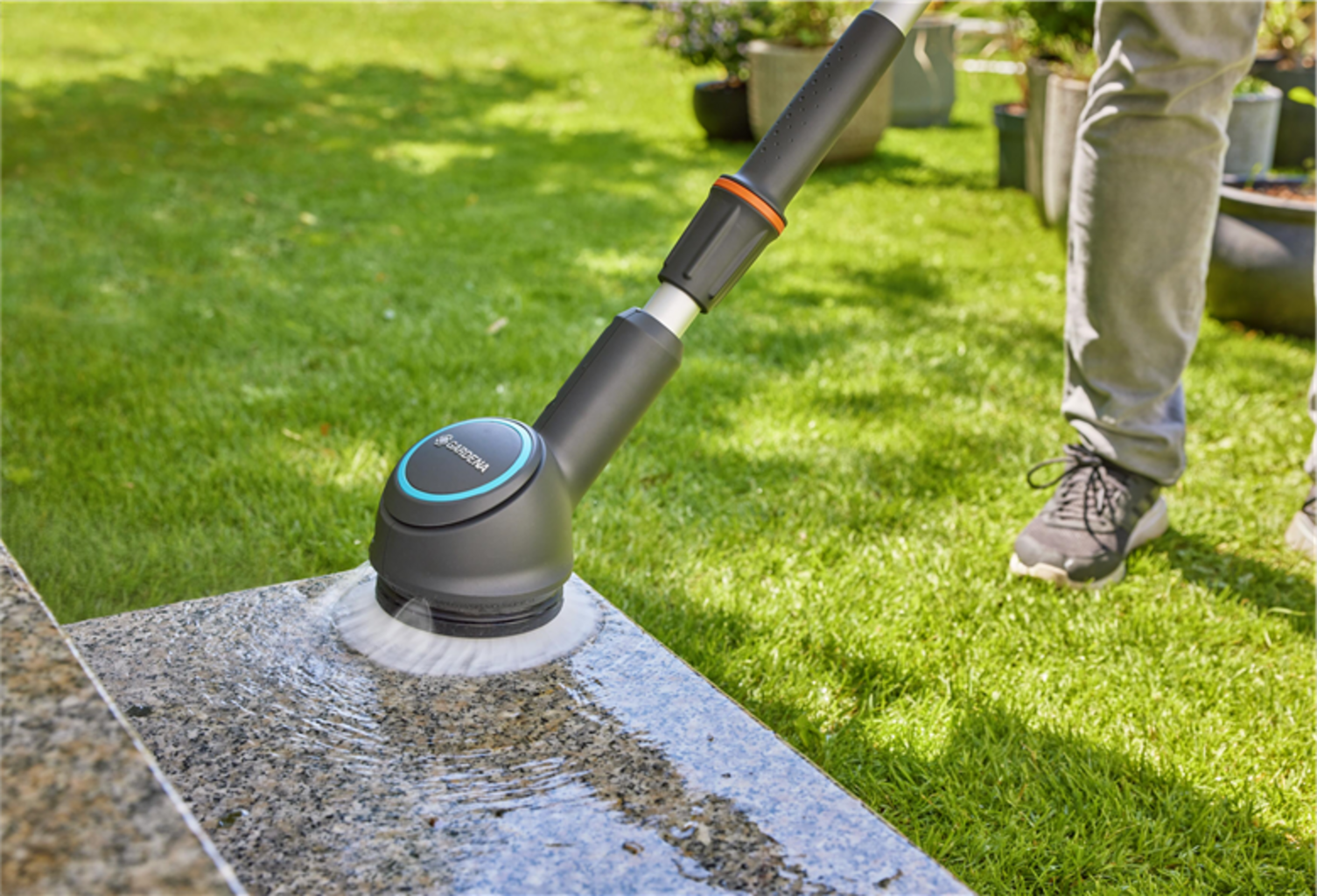 Descubra o acessório de escova circular GARDENA para AquaBrush – a solução ideal para a limpeza suave de superfícies sensíveis a riscos!