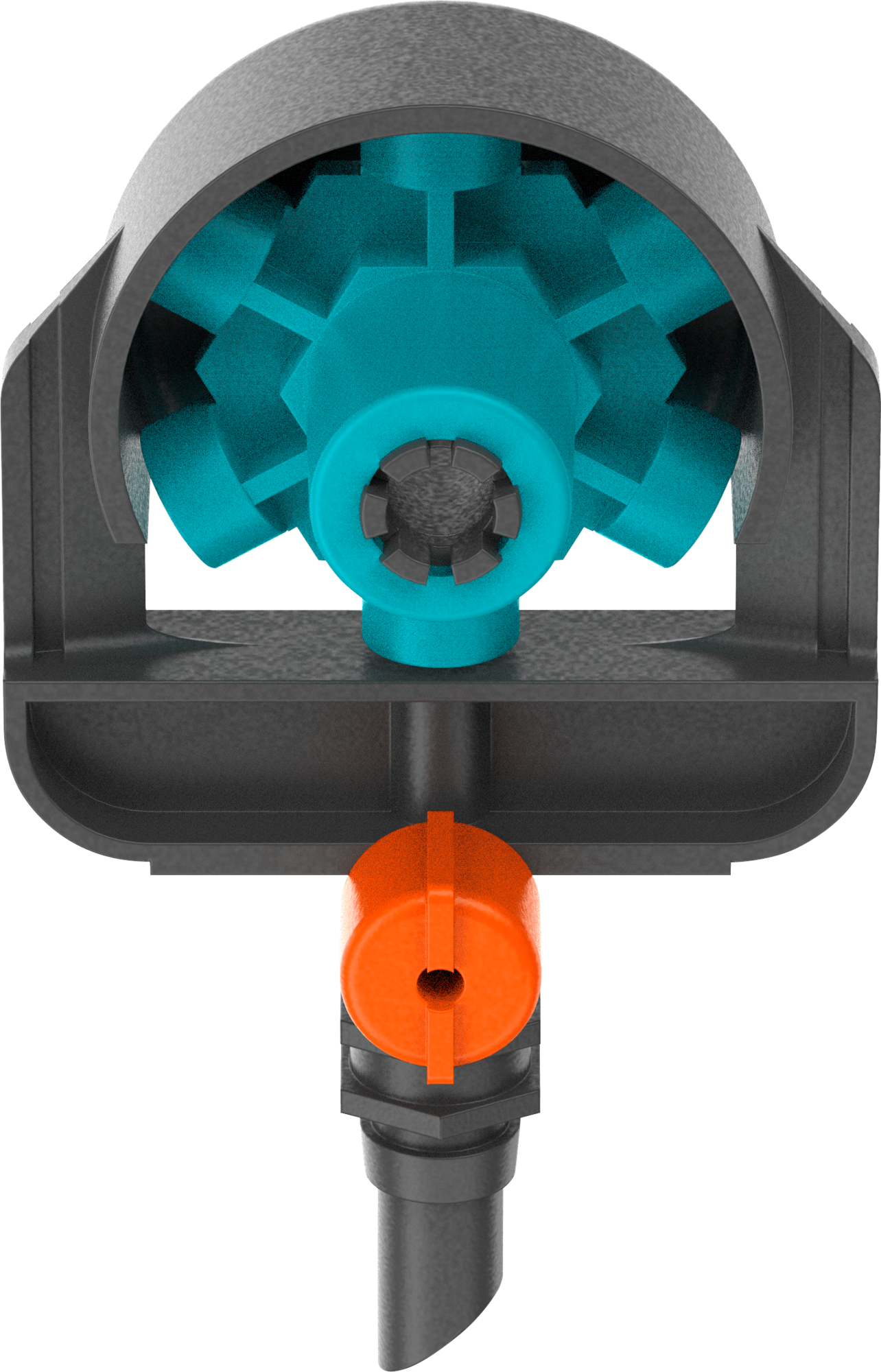 Com o Bocal de Pulverização 6 em 1 Micro-Drip-System, pode escolher entre seis padrões de pulverização diferentes para tirar o máximo partido da rega do seu jardim. A névoa de pulverização fina é adequada até para mudas delicadas. Utilize o bocal de pulverização para zonas longas e estreitas e decida se deseja a rega em apenas uma ou em ambas as direções. O ângulo também pode ser ajustado para 90º, 158º, 270º ou 360º. Por fim, o alcance do jato pode ser determinado através de um botão rotativo.
