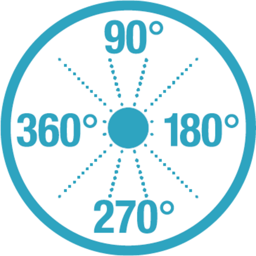 - Ângulo de rega: 90º, 158º, 270º ou 360º