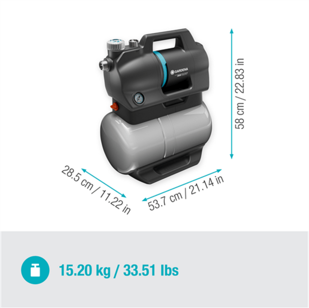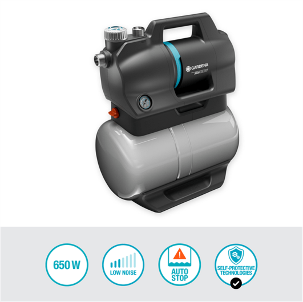 A Bomba de Pressão Doméstica 3900 Silent da GARDENA é um componente indispensável para o seu abastecimento de água em casa e no jardim. Permite-lhe utilizar água da chuva ou de poços para a rega do seu jardim ou como água de serviço em casa, por exemplo, para autoclismos ou para a máquina de lavar roupa.