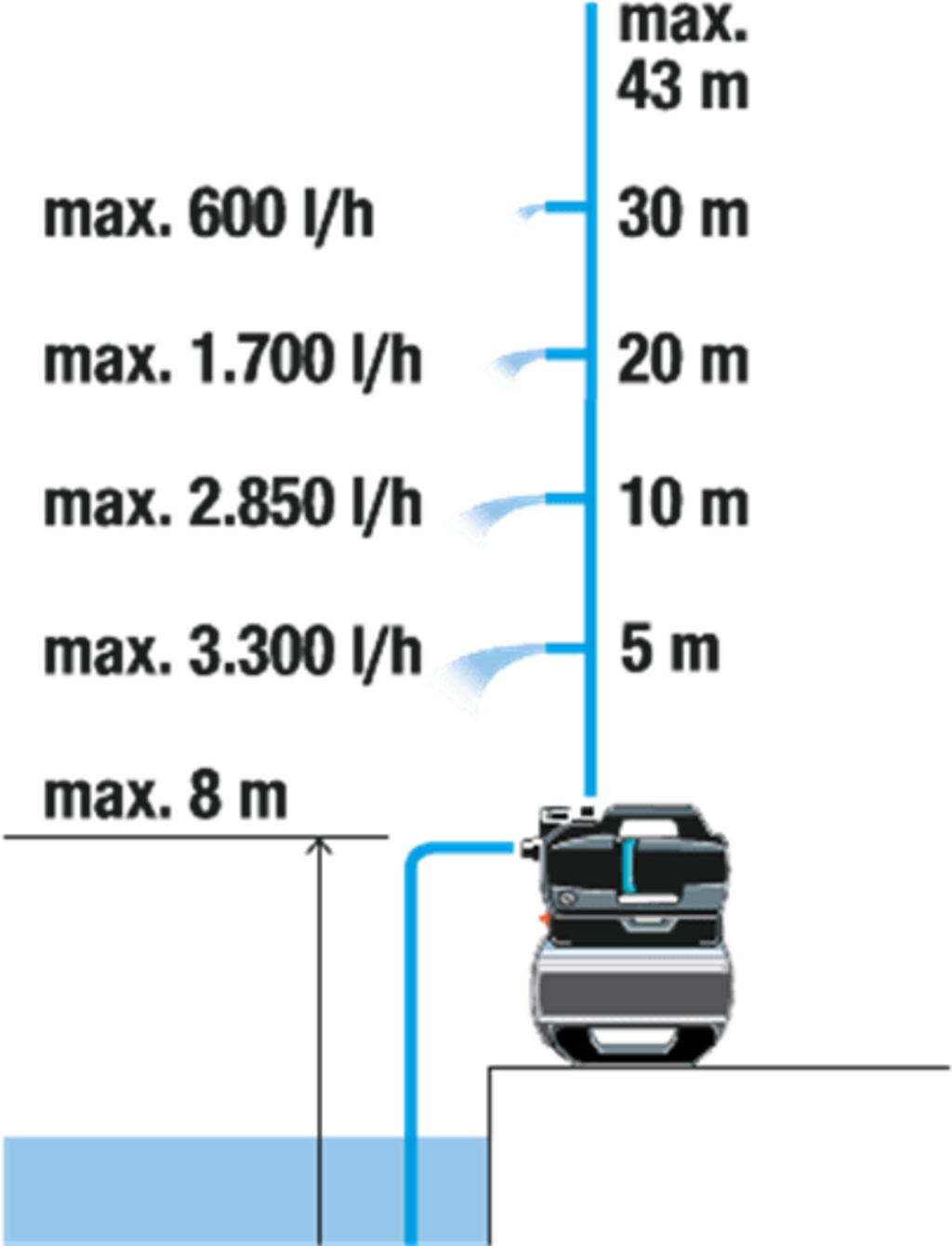 | Altura manométrica máx. | 43 m |