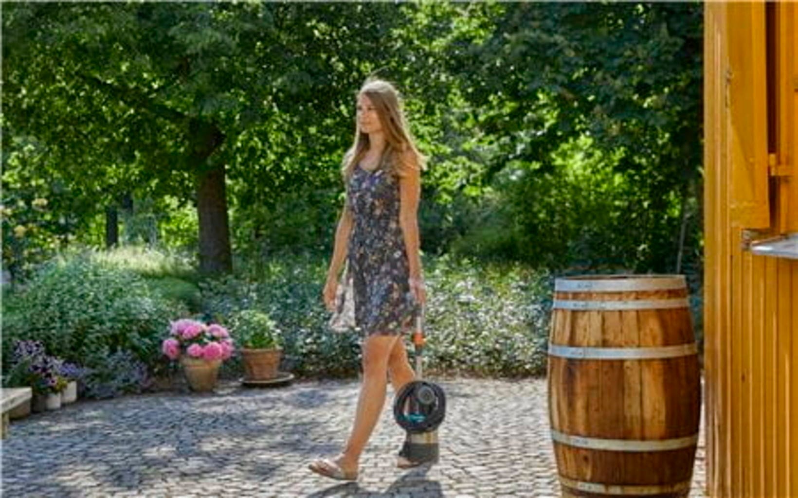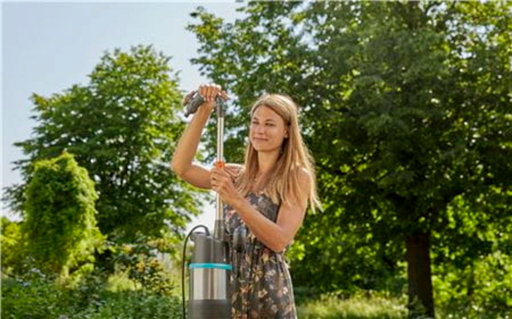 Não só a instalação é particularmente simples – o transporte e o armazenamento da bomba também são muito fáceis graças ao tubo telescópico e à prática pega de transporte.