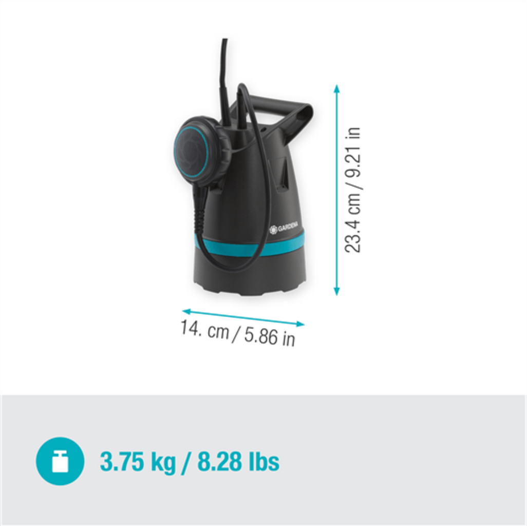 A GARDENA Klarwasser-Tauchpumpe 8600 BASIC é ideal para drenar, transferir e bombear água limpa em casa e no jardim. Quer pretenda secar uma cave inundada, esvaziar um poço de infiltração ou utilizar água da chuva para irrigação - esta bomba é a escolha certa!